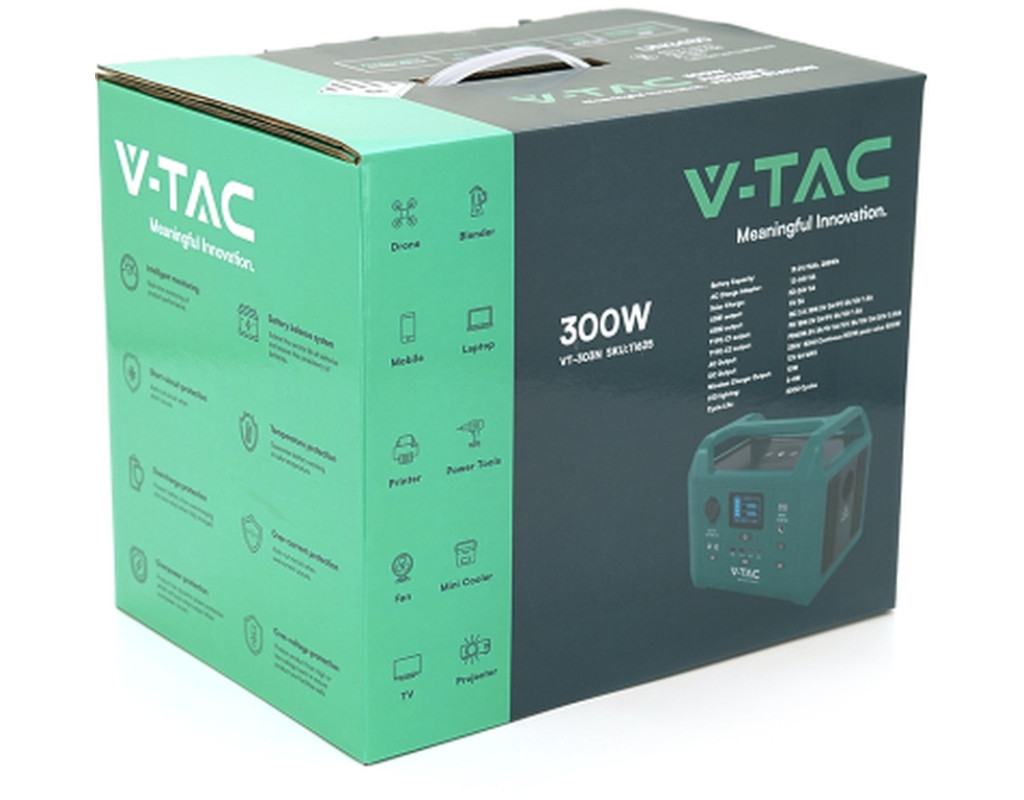 Зарядна станція V-TAC 300W 288Wh (VT-303N) являє собою сучасний, надійний і багатофункціональний пристрій, призначений для забезпечення енергетичного резерву в різноманітних умовах. Цей потужний гаджет стане ідеальним рішенням для тих, хто потребує портативного джерела енергії під час подорожей, на дачі чи навіть у повсякденному житті. Оснащена високоякісними LiFePo4 акумуляторами, зарядна станція гарантує тривалий період експлуатації — до 2000 циклів зарядки, зберігаючи 80% своєї початкової ємності. Завдяки ємності у 288 Вт*год, вона ідеально підходить для зарядки смартфонів та живлення котлів, що робить її універсальною у використанні. Час зарядки: Від мережі (AC 220в): ~3 години. Від сонячної панелі: ~1.8–10 годин (залежно від джерела) Зарядна станція V-TAC відзначається вихідною потужністю в 300 Вт і підтримує одночасну зарядку до чотирьох пристроїв. Вона оснащена багатьма вихідними інтерфейсами, серед яких: 2 x DC-роз'єм, 2 x USB Type A, 1 x USB Type C, прикурювач і розетка на 220 В. Завдяки такій різноманітності інтерфейсів, ви зможете з легкістю підключити будь-які сучасні девайси. Унікальна перевага цього пристрою — можливість заряджання від електромережі або сонячної панелі, що дозволяє залишатися енергонезалежним навіть в умовах відсутності побутової електрики. Також станція обладнана вбудованим ліхтариком, що корисно для екстремальних ситуацій, та дисплеєм, який надає інформацію про рівень заряду та робочий стан. Зручна ручка дозволяє легко переносити пристрій, що додає комфорту у використанні. Система захисту V-TAC 300W 288Wh (VT-303N) відповідає найвищим стандартам безпеки. Пристрій захищений від перевантажень, короткого замикання, надлишкової та зниженої напруги на вході/виході, перегрівання, перезаряджання, зворотного струму, що забезпечує безпечну роботу навіть у найекстремальніших умовах. Цей продукт розрахований на роботу в широкому температурному діапазоні від -10°C до +45°C, що свідчить про його надійність і готовність до будь-яких екстремальних умов. Зарядна станція V-TAC 300W 288Wh (VT-303N) — це вибір, що гарантує якість, безпеку та надійність. Вона стане незамінним помічником як на активному відпочинку, так і в щоденних потребах, забезпечуючи вас необхідною енергією в будь-якій ситуації. |