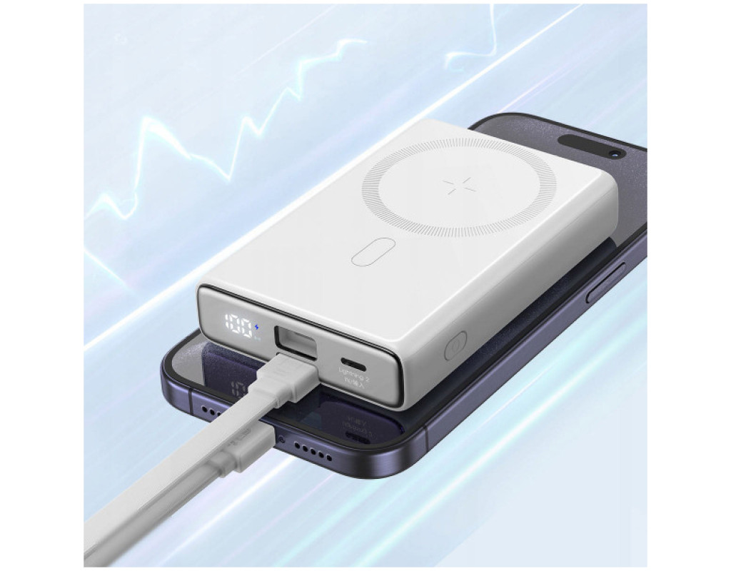 Батарея універсальна JOYROOM Magnetic Wireless 10000mAh 20W QC, USB-C In/Out White (JR-PBM01 / 6941237112545)