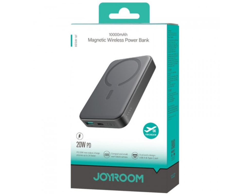 Батарея універсальна JOYROOM Magnetic Wireless 10000mAh 20W PD, QC, USB-C In/Out Black (JR-W020 / 6941237118455)