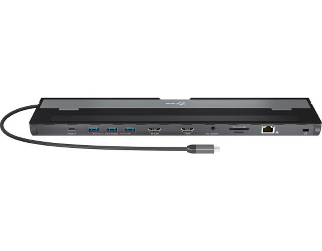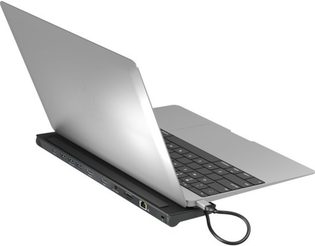 Ця док-станція USB 3.0 оснащена всіма необхідними роз'ємами, включаючи три порти USB 3.0, порт RJ45 Gigabit Ethernet, зчитувач/записувач карт пам'яті, комбінований аудіороз'єм і порт USB-C, що підтримує живлення потужністю до 100 Вт. Вона також має слот для замка безпеки для захисту від крадіжки, що робить її ідеальною для використання в бізнес-організаціях. Завдяки тонкому дизайну, що розсіює тепло, та двосторонньому відсіку для зберігання кабелю, ця док-станція USB-C забезпечує легке підключення незалежно від розташування порту USB-C і легко вписується в будь-яке робоче середовище. ОСОБЛИВОСТІ