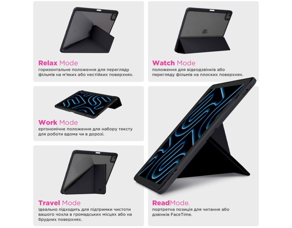 Чохол ArmorStandart Y-Type PEN поєднує захист і функціональність, створений для зручного використання планшета в будь-яких умовах. Вбудований слот для стилуса забезпечує безпечне зберігання стилусу, щоб він завжди був під рукою. Завдяки продуманій конструкції чохол легко трансформується у підставку з двома оптимальними кутами огляду, ідеальними для відеодзвінків у FaceTime або перегляду фільмів. Це забезпечує зручність під час використання планшета як для роботи, так і для відпочинку. Чохол також підтримує функцію Wake/Sleep, яка автоматично пробуджує планшет під час відкриття та переводить його у режим сну після закриття, що зберігає заряд батареї. Матеріали, з яких виготовлений чохол, забезпечують надійний захист планшета. Передня панель виконана з якісної PU шкіри, що приємна на дотик і стійка до зносу. Прозора задня спинка з акрилу не лише захищає пристрій, але й дозволяє демонструвати оригінальний дизайн планшета, а бокові сторони з гнучкого TPU забезпечують додаткову амортизацію при ударах. Особливості: