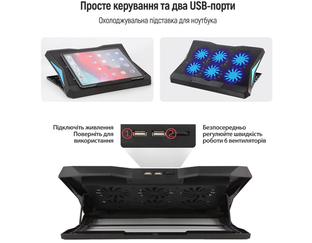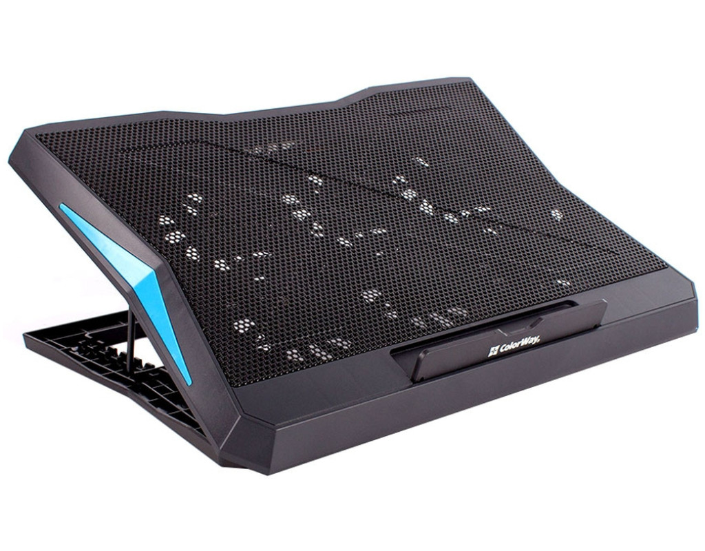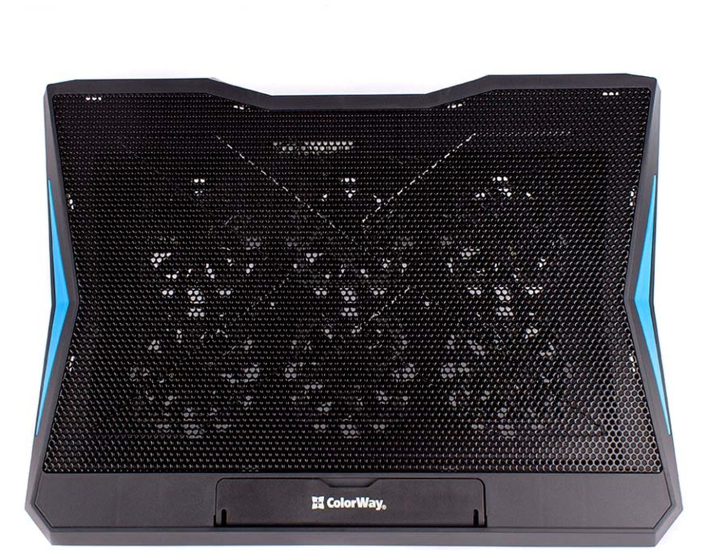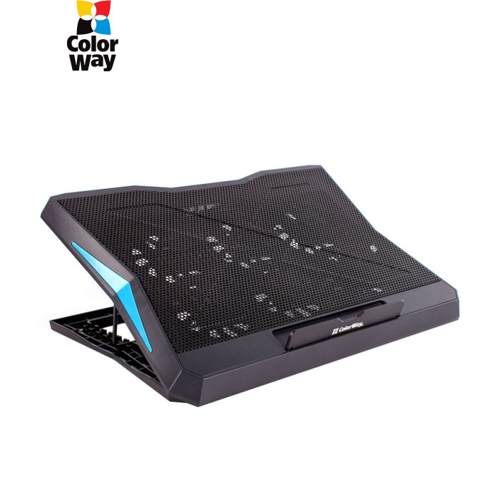 | Охолоджувальна підставка ColorWay — максимальна ефективність та комфорт Охолоджувальна підставка для ноутбука ColorWay створена для користувачів, які проводять багато часу за пристроєм і прагнуть забезпечити оптимальне охолодження та зручність під час роботи чи ігор. Вона поєднує продуману конструкцію, стильний дизайн і міцні матеріали, що робить її незамінним аксесуаром для дому, офісу чи ігрового простору. Ефективна система охолодження Широка перфорована металева поверхня забезпечує вільну циркуляцію повітря, що дозволяє значно знизити температуру ноутбука. Така конструкція запобігає перегріву навіть під високим навантаженням, підтримуючи стабільну продуктивність пристрою. Регульована ергономіка та надійність Підставка має регульований кут нахилу, що дозволяє обрати оптимальне положення для друку, перегляду відео або ігор. Надійні упори утримують ноутбук на місці, запобігаючи його ковзанню під час активного використання. Стиль та довговічність Стильні бокові акценти з LED-підсвіткою надають підставці сучасного геймерського вигляду, а міцний пластиково-металевий корпус гарантує довговічність і стійкість до щоденного використання. Підставка підходить для ноутбуків різного розміру — від компактних моделей до великих 17-дюймових рішень. Характеристики: