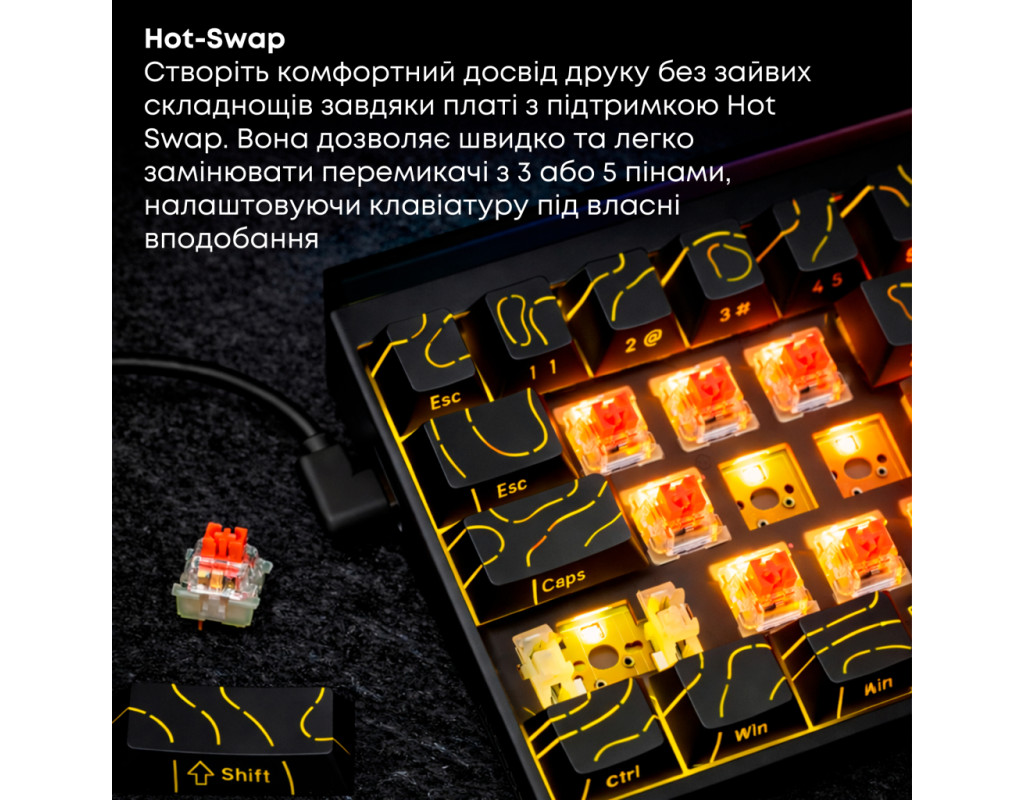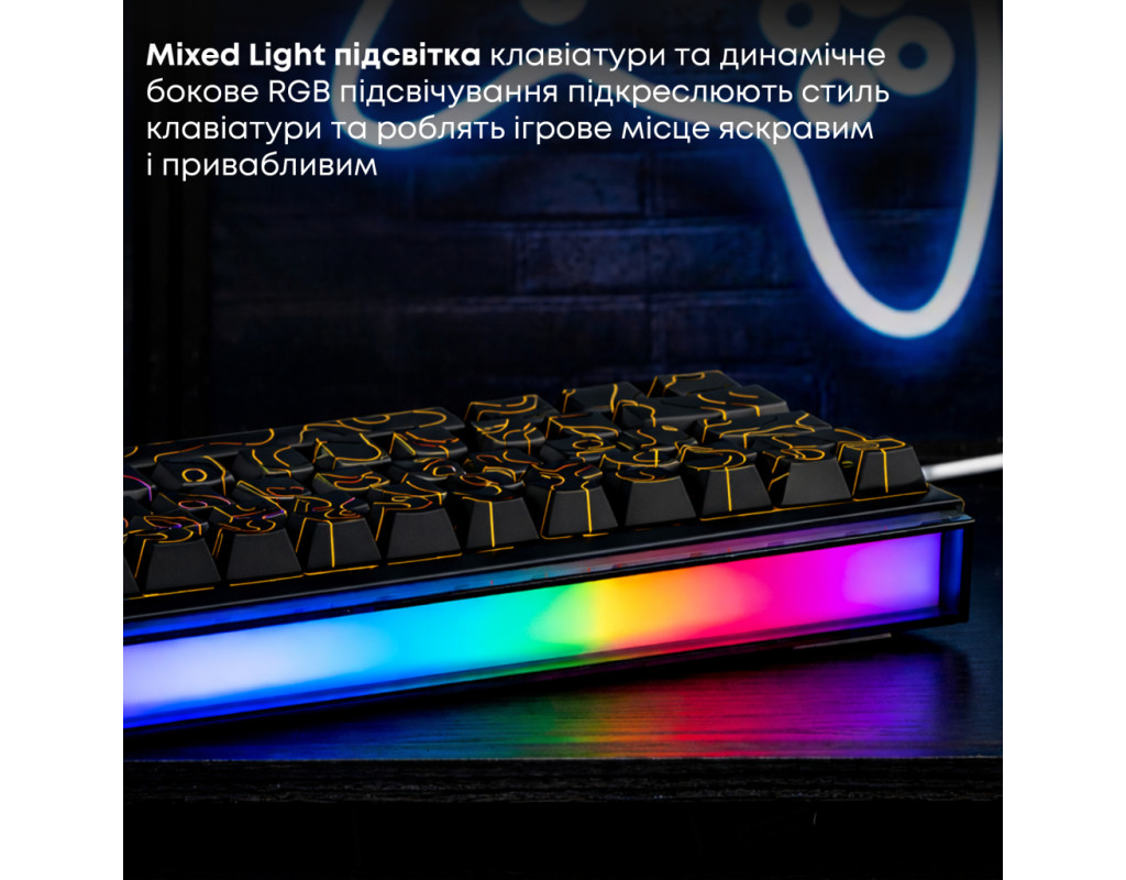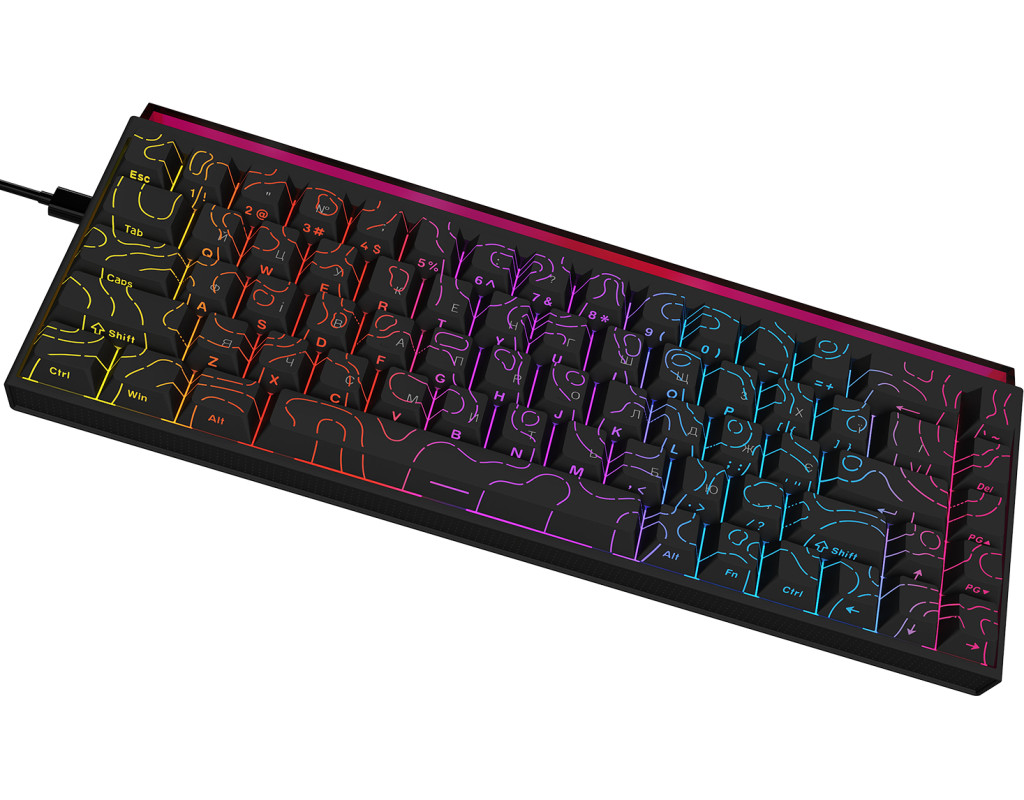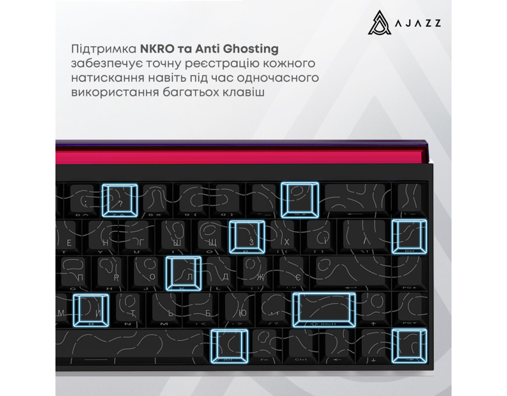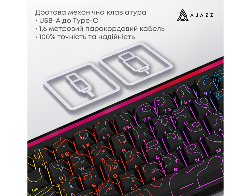 USB, Підсвічування - Rainbow LED, англійська, українська, Перемикачі (Switches) - Ajazz Red Switch, Клавіш - 68, 327x114x34 мм, 510 г
