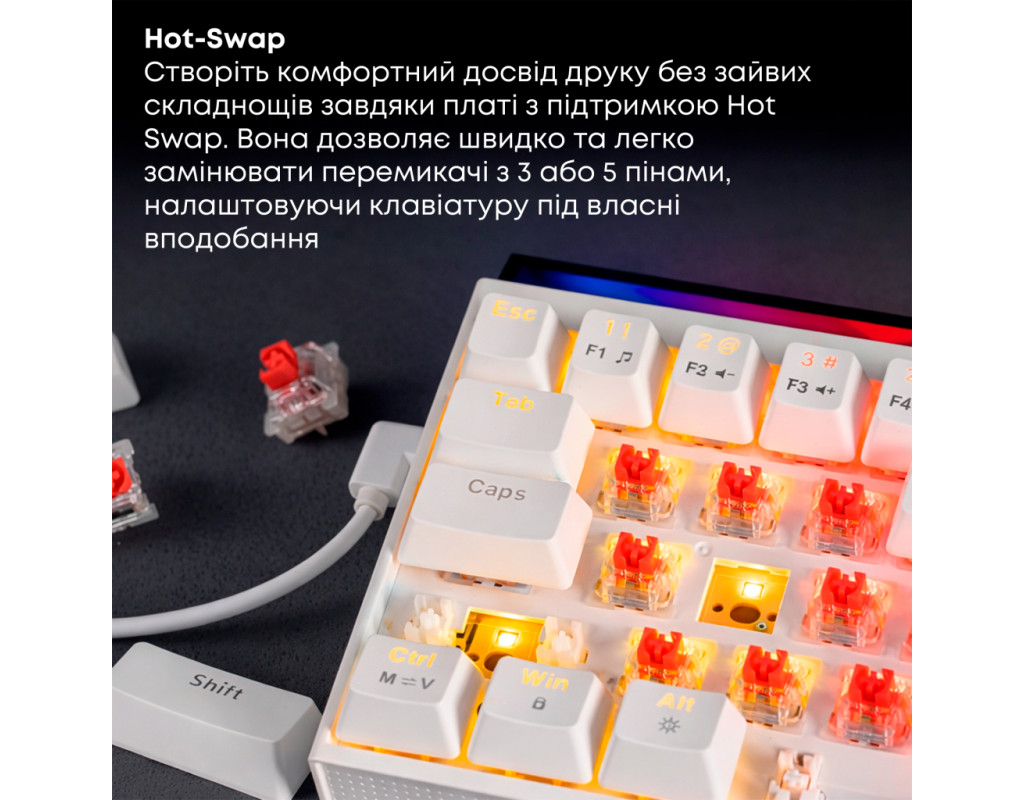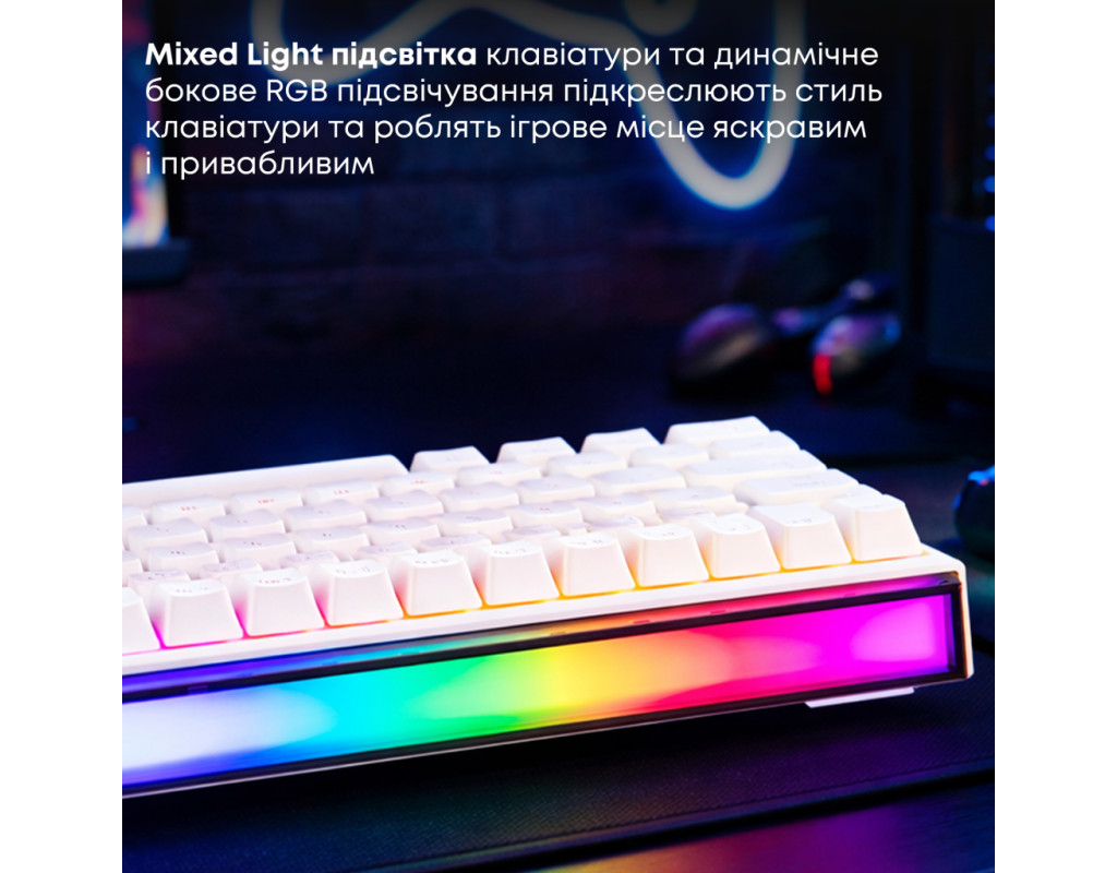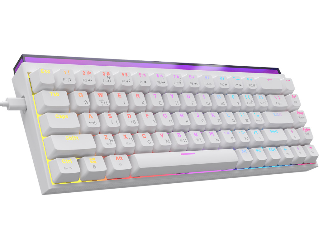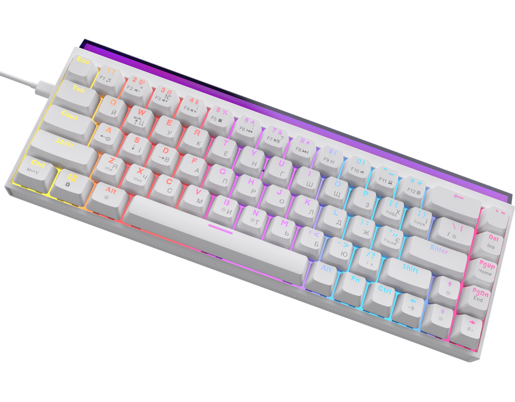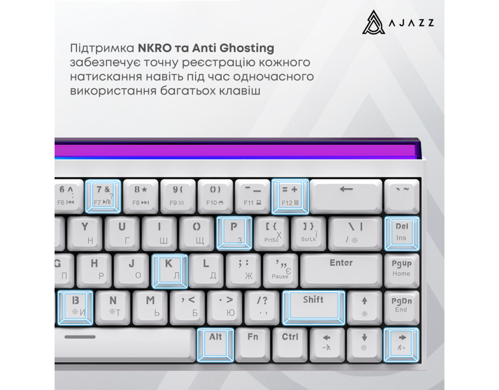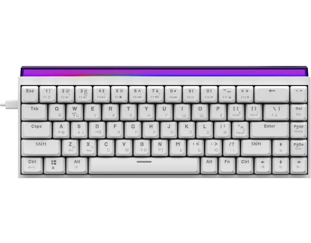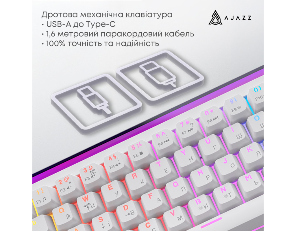 USB, Підсвічування - Rainbow LED, англійська, українська, Перемикачі (Switches) - Ajazz Red Switch, Клавіш - 68, 327x114x34 мм, 510 г