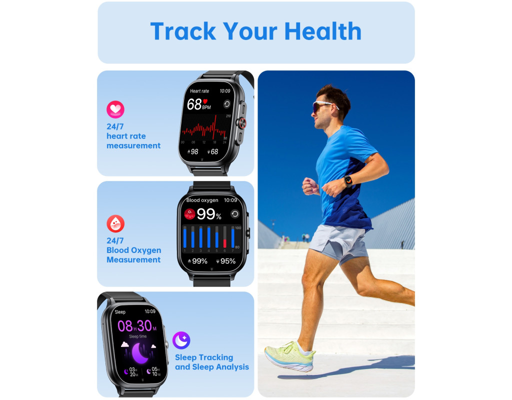 Особливості (Смартгодинники) Bluetooth 5.0, Відстеження сну, 100+ спортивних режимів, Акселерометр, Керування музикою, Магнітна зарядка, Пульсометр, Мікрофон, Динамік, Захист за стандартом IP68