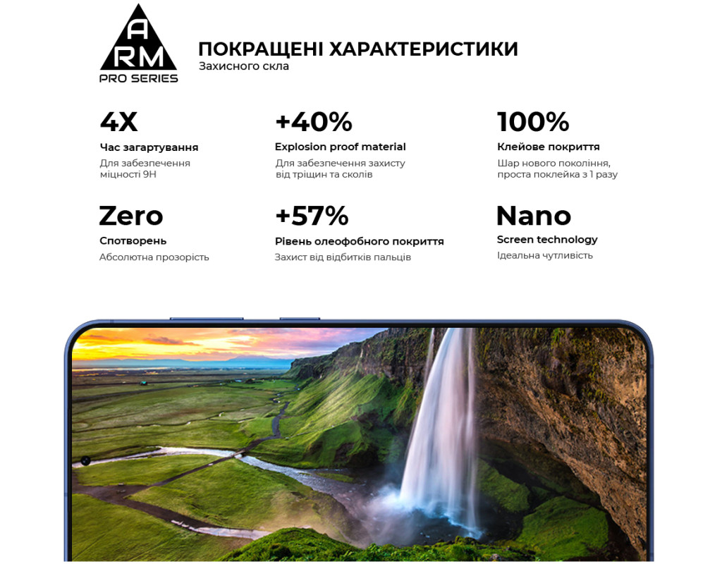 Захисне скло Armorstandart Pro Series - це абсолютно новий рівень захисту дисплея смартфона. У виробництві використовується матеріал Japenese Asahi Glass, який проходить загартування впродовж 4 годин. Це забезпечує ідеальну прозорість захисного покриття без спотворень зображення, а також потужний захист від тріщин і подряпин. Скло ніяк не впливає на чуйність тачскрина. У ньому міститься спеціальний матеріал, що перешкоджає появі відколів. Верхня частина скла містить покращене олеофобне й гідрофобне покриття. Під час використання скла це забезпечує природні тактильні відчуття - пальці легко ковзають по поверхні. Водночас зображення відбивається з автентичною яскравістю й чіткістю без спотворень. Задня частина по всій площі покрита клейовою основою нового покоління. Завдяки цьому досягається повний брак пухирців і можливість переклеювання скла в разі первісного нерівного встановлення. Захисне скло Armorstandart Pro Series має оптимальні габарити та товщину на 0,3 мм. Передбачено вирізи під усі датчики, камери та роз'єми. До комплекту входить усе потрібне для швидкого та комфортного встановлення. Особливості: