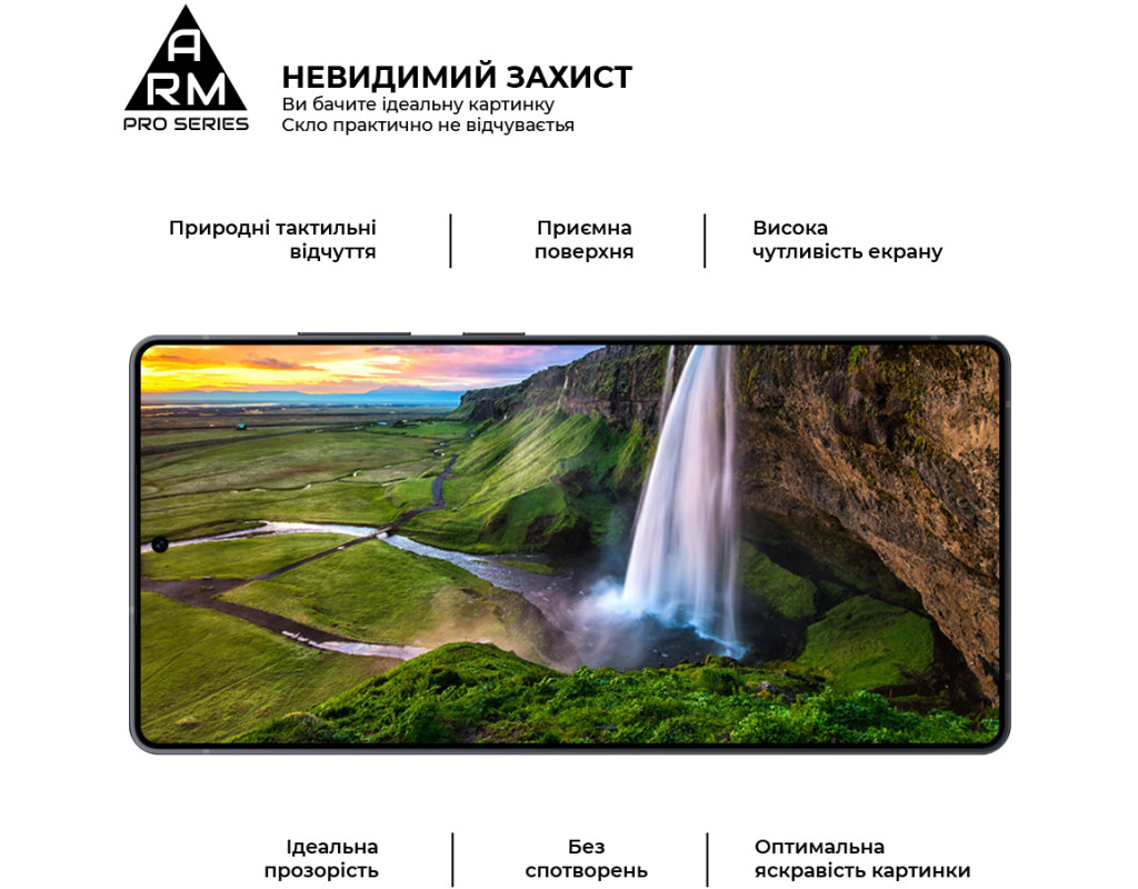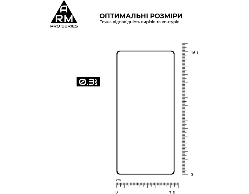 Захисне скло Armorstandart Pro Series має оптимальні габарити та товщину на 0,3 мм. Передбачено вирізи під усі датчики, камери та роз'єми.