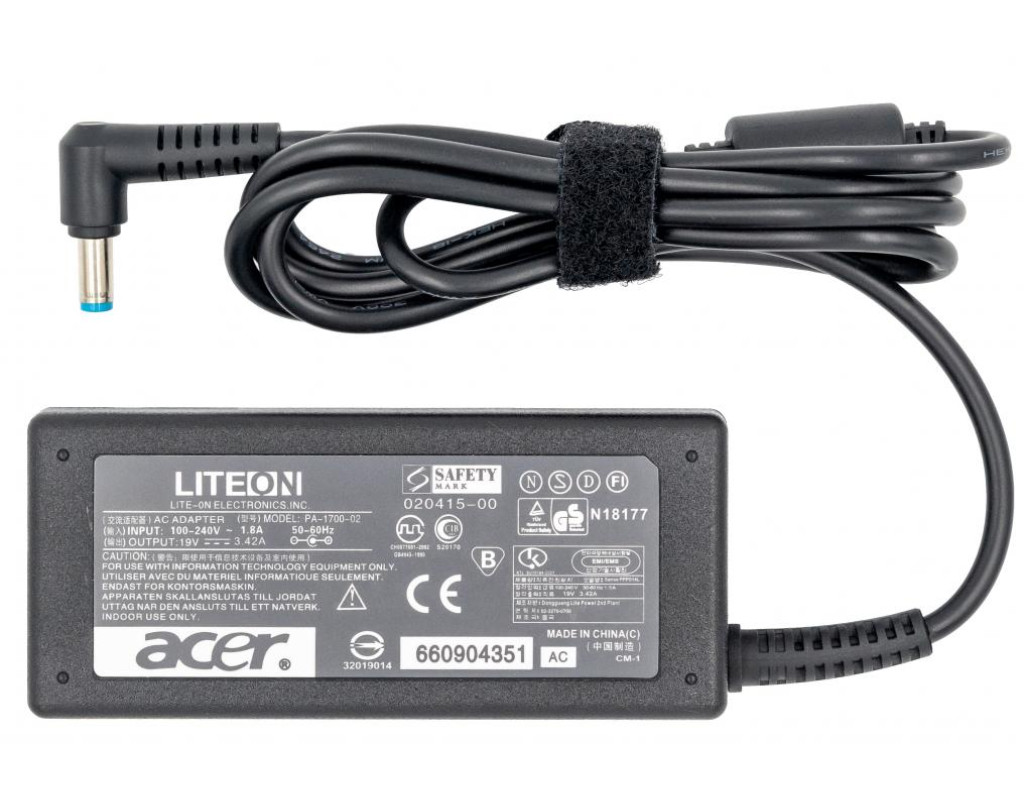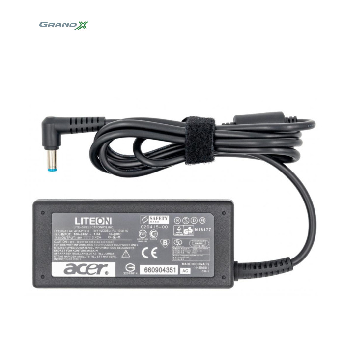 | Блок живлення до ноутбука Grand-X Acer (19V 3.42A 65W) 5.5x1.7mm (ACACL65W) - якісний і надійний адаптер змінного струму, який дозволяє одночасно заряджати батарею від мережі і працювати з ним. Дозволяє заряджати акумулятор скрізь, де є розетка. Забезпечує безперебійну роботу, що дозволить Вам бути впевненим у збереженні вашого ноутбука і даних на ньому. Блок живлення має якісні коннектори з міцної і вогнетривкої пластмаси, що забезпечує довговічне використання і надійність від займань. Блок живлення до ноутбука забезпечує швидку зарядку ноутбука і гарантує безпеку при нестабільній роботі електромережі. Легка вага і невеликий розмір дозволяють без зусиль носити його в сумці для ноутбука. |