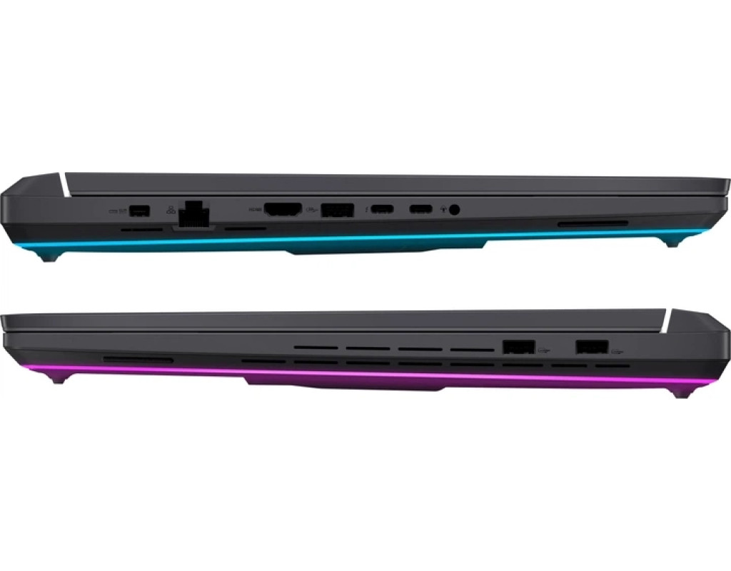 | До перемоги на повній швидкості! Ігрова платформа Windows 11 Pro з потужною конфігурацією: процесор – до Intel Core Ultra 9 275HX, відеокарта – до NVIDIA GeForce RTX 5080 для ноутбуків (175 Вт). Більше можливостей ROG Strix G18 модельного року 2025 — це потужна ігрова платформа на базі операційної системи Windows 11. До її конфігурації можуть входити процесор Intel Core Ultra 9 275HX і відеокарта NVIDIA GeForce RTX 5080 для ноутбуків з технологією Advanced Optimus, доповнені 32 ГБ оперативної пам’яті DDR5‑5600 і твердотільним накопичувачем PCIe 4.0 обсягом 1 ТБ. Жодних обмежень ROG Strix G18 має надзвичайно потужну конфігурацію, причому робота компонентів оптимізована для досягнення максимальної продуктивності. У режимі Turbo загальний теплопакет системи становить неймовірні 230 Вт, а в ручному режимі його можна збільшити до 250 Вт! Домінуюча сила ROG Strix G18 ідеально підходить як для ігор, так і для багатозадачної роботи. Високу швидкодію гарантує процесор Intel – до 24-ядерного Core Ultra 9 275HX з теплопакетом 75 Вт. Новий рівень графіки Ігровому пристрою потрібна відповідна графічна підсистема, тому в конфігурацію ROG Strix G18 може входити відеокарта NVIDIA GeForce RTX 5080 для ноутбуків, яка ідеально підходить для запуску сучасних відеоігор завдяки високому ліміту потужності й передовим технологіям (AI-масштабування DLSS 4, NVIDIA Max-Q з Advanced Optimus і Dynamic Boost). Зручність апгрейду Оновлювати ROG Strix G18 модельного року 2025 стало простіше: ноутбук забезпечує зручний доступ — без інструментів — до оперативної пам’яті, слотів накопичувачів і вентиляторів. Решта частин материнської плати накрита спеціальним захисним кожухом, який можна зняти, відкрутивши лише кілька гвинтів. Система охолодження Система охолодження нового ROG Strix G18 була повністю перероблена задля максимальної ефективності й продуктивності пристрою. Усі вихлопні отвори переміщено на задню панель, подалі від користувача, а прохолодне повітря надходить усередину корпусу через бокові та нижню панелі, а також через клавіатуру — це забезпечує комфорт під час тривалих ігрових сесій. Велика випарна камера, секційний радіатор, три вентилятори й рідкий метал Conductonaut Extreme на центральному та графічному процесорах — завдяки цим інженерним рішенням ноутбук став значно тихішим у режимі Turbo порівняно з попередньою моделлю. Дисплей Щоб перемогти суперника, його спершу потрібно побачити. А щоб кожен кадр був максимально чітким, ноутбук ROG Strix G18 оснащується дисплеєм Nebula — із роздільною здатністю 2.5K, співвідношенням сторін 16:10, частотою оновлення 240 Гц, часом відгуку 3 мс, яскравістю 500 кд/м² і 100% охопленням DCI‑P3. Два шари плівки Ambient Contrast Ratio зменшують відблиски, підвищують контрастність і збільшують кути огляду. Бити точно в ціль Іноді про перемогу або поразку вирішує один точний натиск клавіші, тож повнорозмірна клавіатура ноутбука ROG Strix G18 має оптимізовану розкладку з проміжками між групами функціональних клавіш, великими стрілками та спеціальними гарячими клавішами для команд, які часто використовуються. Ексклюзивна технологія Overstroke дозволяє збільшити кількість дій на хвилину завдяки більш ранньому спрацюванню клавіші — ще до її повного натискання. Клавіатура оснащена повноколірним підсвічуванням з поклавішним налаштуванням (через Armoury Crate), а також великим сенсорним тачпадом. Звук студійної якості Вбудована акустична система ноутбука підтримує об’ємне звучання Dolby Atmos, забезпечуючи повне 