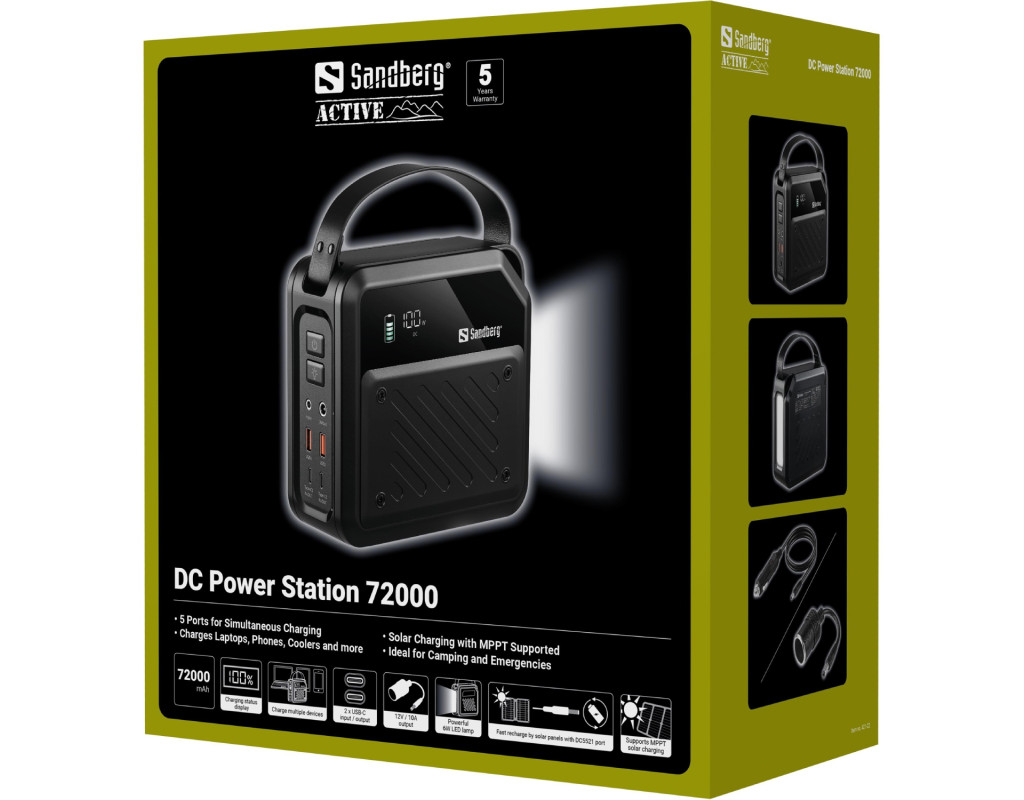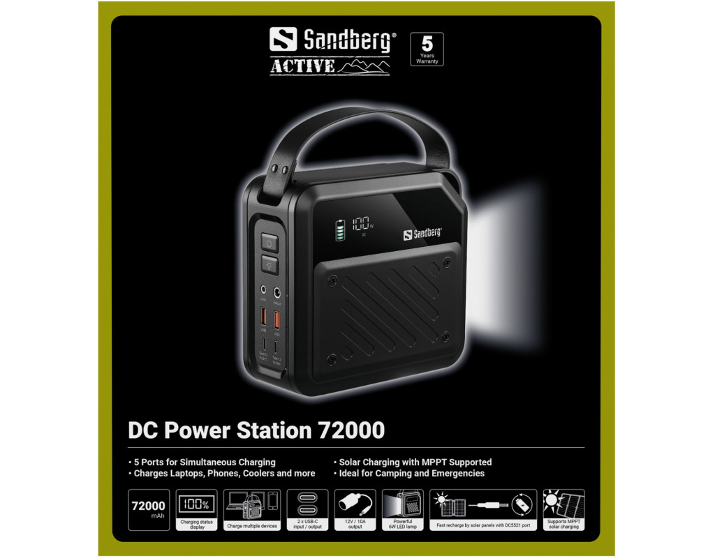 | УМБ Sandberg 72000mAh 268W, DC9,6–12,6v, 2xUSB-A, 2xUSB-C 100w In/Out, LMFP, ліхтарик 6Вт |