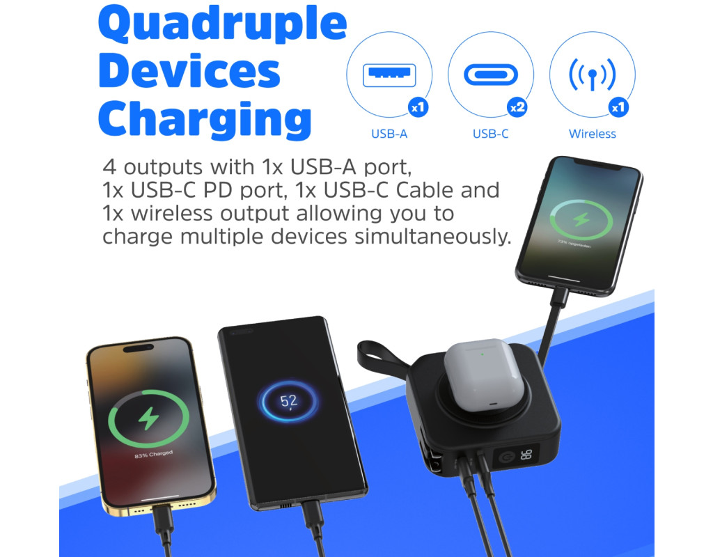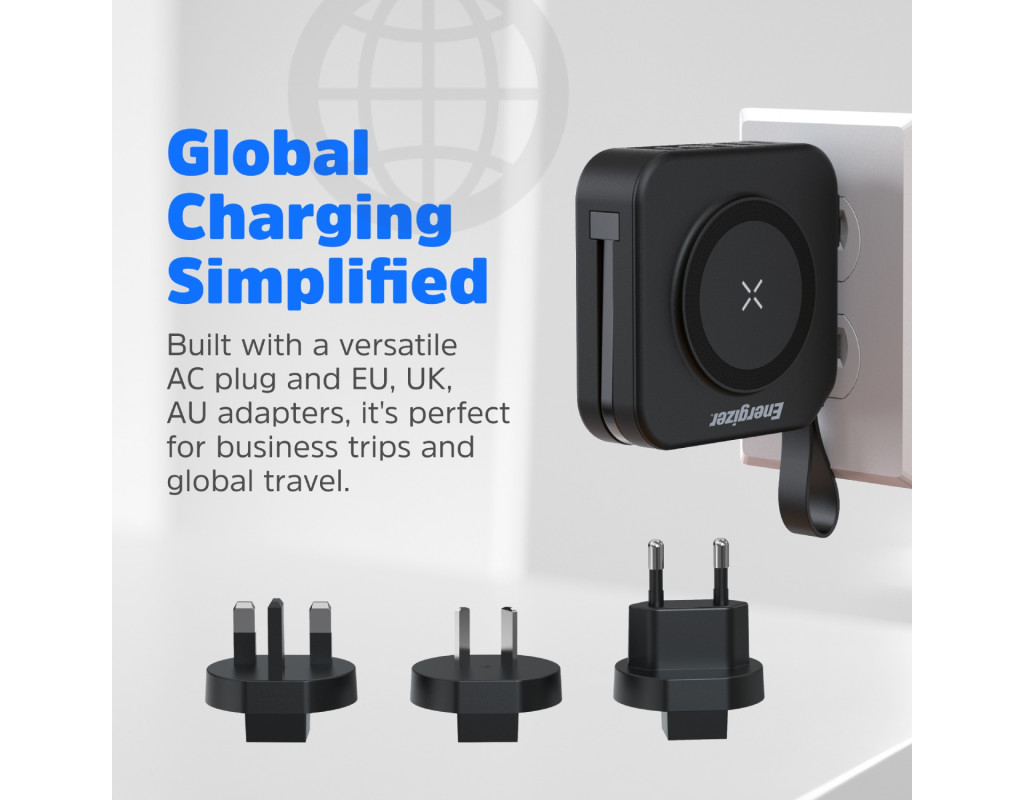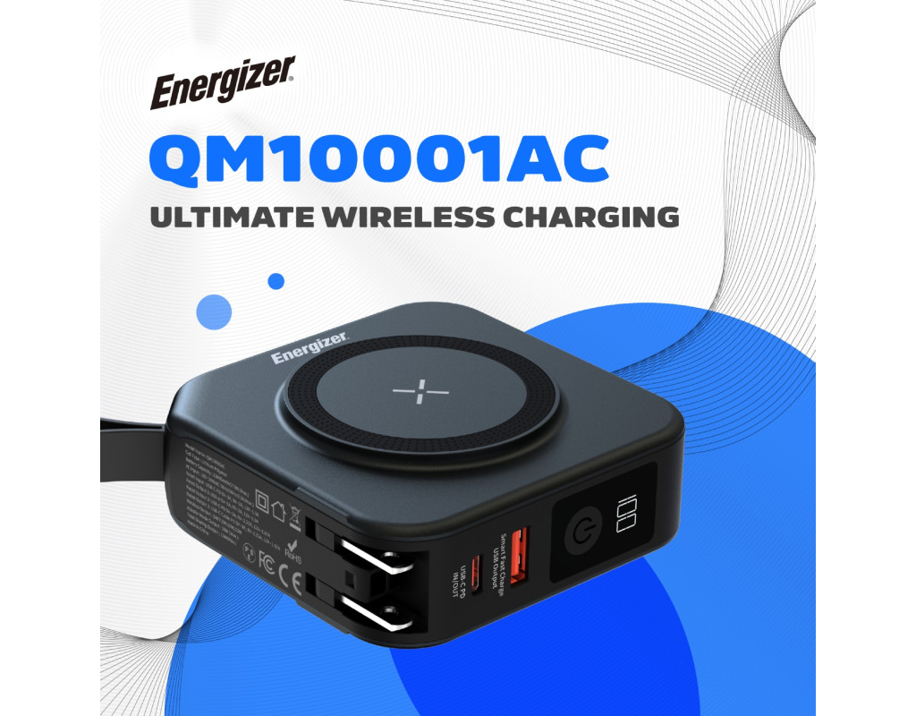 | УМБ Energizer Magnetic Wireless 10000mAh 20W PD,AC зарядка,QI-15W, built-in USB-C,USB-А,USB-C In/Out |