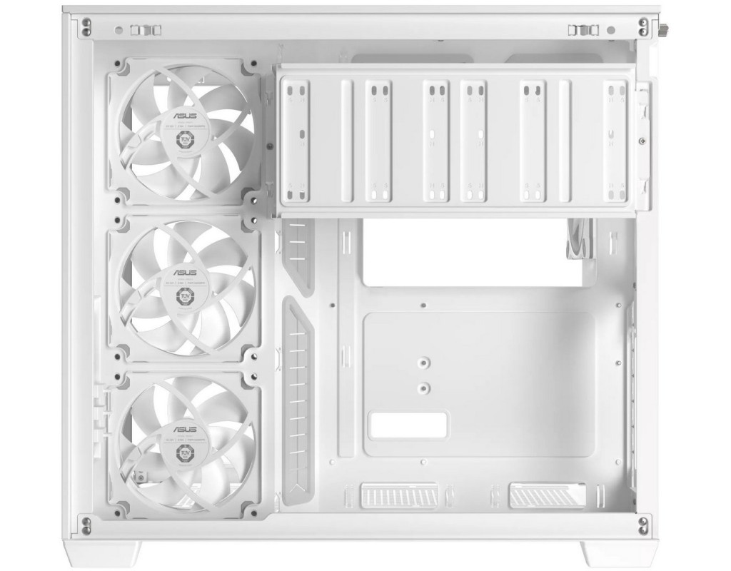 | Корпус ASUS A32 PLUS: формфактор ATX, підтримка 360-міліметрових радіаторів і відеокарт довжиною до 420 мм, чотири попередньо встановлених вентилятори ARGB, зручна система прокладання кабелів, чорний і білий варіанти кольору