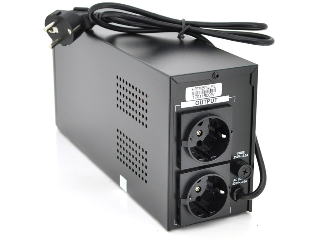 | UPS Ritar E-RTM850 (510W) ELF-L (E-RTM850L) для домашніх ПК, лінійно-інтерактивний (line interactive), 510 Вт, 850 В*А, апроксимована (ступінчаста) синусоїда, 160-275 В, АКБ - вбудований / 9 AH x 1, LCD - без дисплея, 85 x 140 x 310 мм, 5.8 кг |