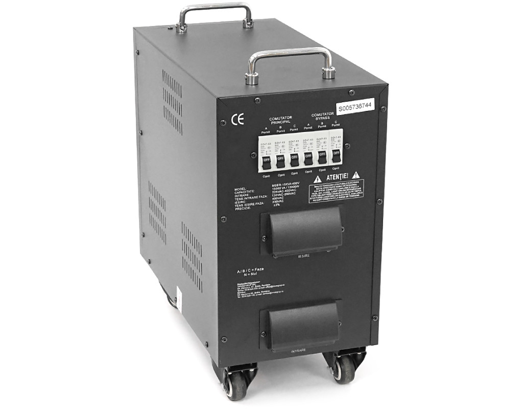 Стабілізатор напруги Conter MSER-15KVA / 12KW- 400V-V2 трифазний, сервопривід, монтажу підлоги, LED дисплей, діапазон 225-450V, AC400±3%, колодка, 416x219x352 mm, 33.8kg