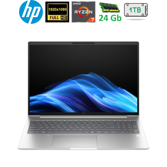 16", 1920x1200 (WUXGA), IPS, 300nits, AMD Ryzen 7 250 (3.3 - 5.1 ГГц), 24 ГБ, SSD - 1 ТБ, AMD Radeon Graphics, DOS, 56 Втг, підсвічування клавіатури, сканер відбитків пальців, зарядка від USB, українська клавіатура, 1.75 кг, сріблястий