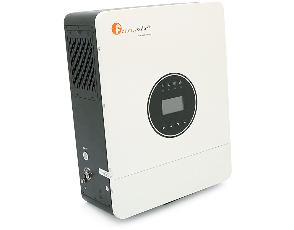 | Гібридний інвертор Felicity IVEM6048-II потужністю 6 кВА (6 кВт) - це багатофункціональний пристрій нового покоління, що поєднує функції потужного інвертора з чистою синусоїдою, інтелектуального MPPT-контролера і автоматичного зарядного пристрою. Модель призначена для роботи з 48-вольтовими акумуляторними батареями та оснащена широким діапазоном вхідної напруги для сонячних панелей, що дозволяє ефективно використовувати сонячну енергію навіть за умов змінного освітлення. Ключовою особливістю є універсальний порт генератора (GEN), який може бути переналаштований як порт для підключення розумного навантаження (Smart Load) з можливістю програмування часу включення та відключення. - Чиста синусоїда на виході, що забезпечує ідеальне харчування для будь-якого навантаження, включаючи чутливу електроніку та двигуни. - Вбудований MPPT-контролер із максимальним струмом заряду до 120А та вхідною потужністю до 7500 Вт для ефективного використання сонячної енергії. - Широкий діапазон вхідної напруги MPPT від 90 до 450 В дозволяє підключати різні конфігурації сонячних панелей. - **Універсальний порт генератора (GEN)**, який може бути переключений в режим 'розумного навантаження' (Smart Load) з програмованими параметрами включення та відключення за напругою або SOC. - Можливість паралельного підключення до 12 інверторів для масштабування потужності системи до 72 кВт (як однофазних, так і трифазних конфігурацій). - Триступінчастий алгоритм заряду (Boost CC, Boost CV, Float) для продовження терміну служби акумуляторів. - Підтримка різних типів батарей: AGM, Flooded, Self-defined, а також літієвих (LiFePO4) з можливістю зв`язку за протоколом BMS (відображення SOC та параметрів на дисплеї). - Програмовані режими роботи: пріоритет мережі, пріоритет сонячної енергії, пріоритет батареї (SBU) для максимальної гнучкості. - Можливість роботи без акумулятора - живлення навантаження безпосередньо від сонячних панелей за наявності сонця. - Функція холодного старту та активації літієвих батарей для запуску системи у будь-яких умовах. - Інтелектуальна зарядка від мережі з регульованим струмом від 10 до 120 А; - Вбудований Wi-Fi модуль для віддаленого моніторингу та керування через мобільний додаток Fsolar (підтримка Android та iOS). - Інформативний РК-дисплей для моніторингу всіх параметрів роботи та зручне меню налаштувань. - Функція запису та відображення накопиченої енергії (PV generated, Load consumed) за день, місяць, рік та всього часу роботи. - Програмований сухий контакт (dry contact) для керування зовнішніми пристроями. - Підтримка RS232, RS485 та CAN інтерфейсів для зв`язку з комп`ютером та зовнішніми системами. Технічні характеристики: • Виробник: Felicity (Felicitysolar) • Модель: IVEM6048-II • Тип пристрою: гібридний інвертор із MPPT-контролером • Номінальна потужність: 6000 ВА / 6000 Вт • Номінальна напруга акумулятора: 48 В • Вихідна напруга: 230 В змінного струму ±5% (чиста синусоїда) • Вихідна частота: 50 / 60 Гц ±0.3 Гц (регулюється) • Вхідна напруга мережі: 90-280 В змінного струму (для побутової техніки) / 180-280 В (для комп`ютерів) • Вхідні параметри PV (сонячних панелей): - Максимальна напруга холостого ходу: 500 В - Діапазон MPPT: 90 - 450 В - Максимальна вхідна потужність: 7500 Вт - Максимальний вхідний струм: 27 А - Максимальний струм заряду від PV: 120 А - Мінімальна напруга запуску: 95 В • Зарядний пристрій від мережі: - Максимальний струм заряду: 120 А (регулюється від 10 до 120 А) - Напруга заряду: 56.4
