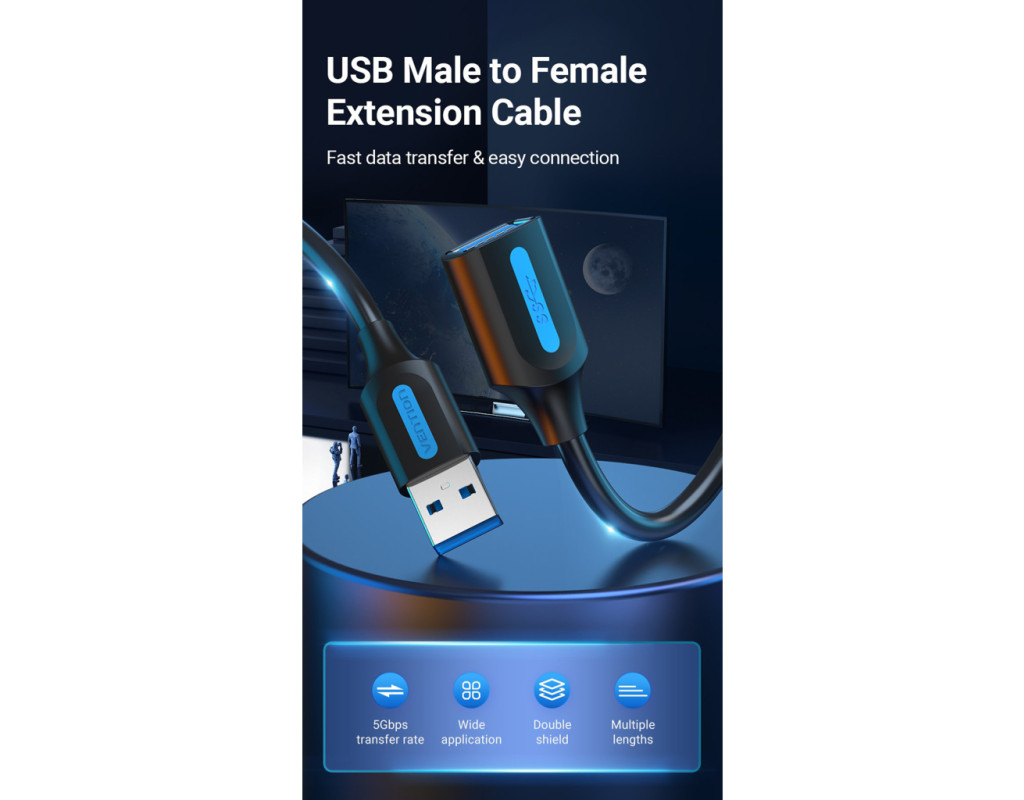 Дата кабель USB 2.0 AM/AF 1.5m black VENTION (CBIBG)