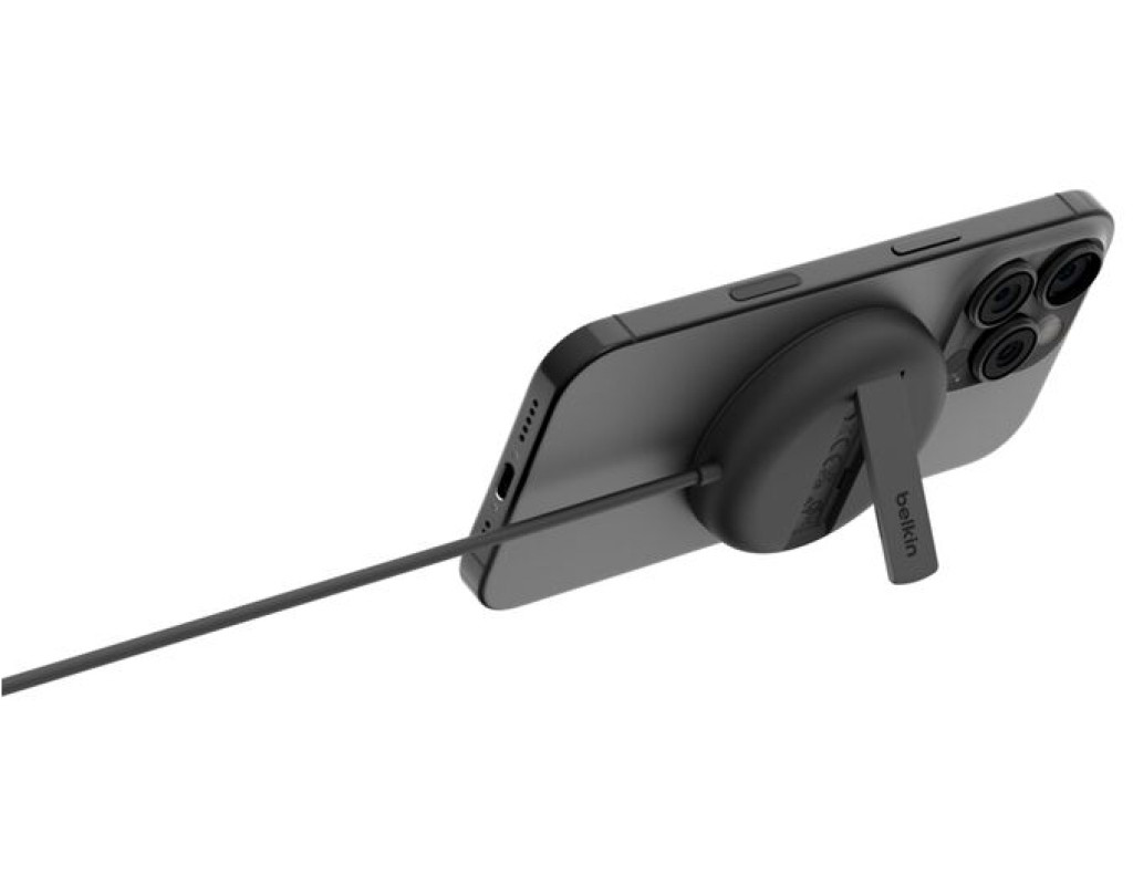 | Бездротовий зарядний пристрій Belkin UltraCharge Magnetic Kickstand забезпечує стабільне заряджання смартфонів потужністю до 15 Вт. Модель працює за стандартом Qi2 та використовує магнітну фіксацію для точного позиціювання смартфона. Конструкція з інтегрованою підставкою зручна для настільного використання. Зарядна панель зберігає компактний формат і лаконічний дизайн. Чорний корпус органічно доповнює робочий простір. |