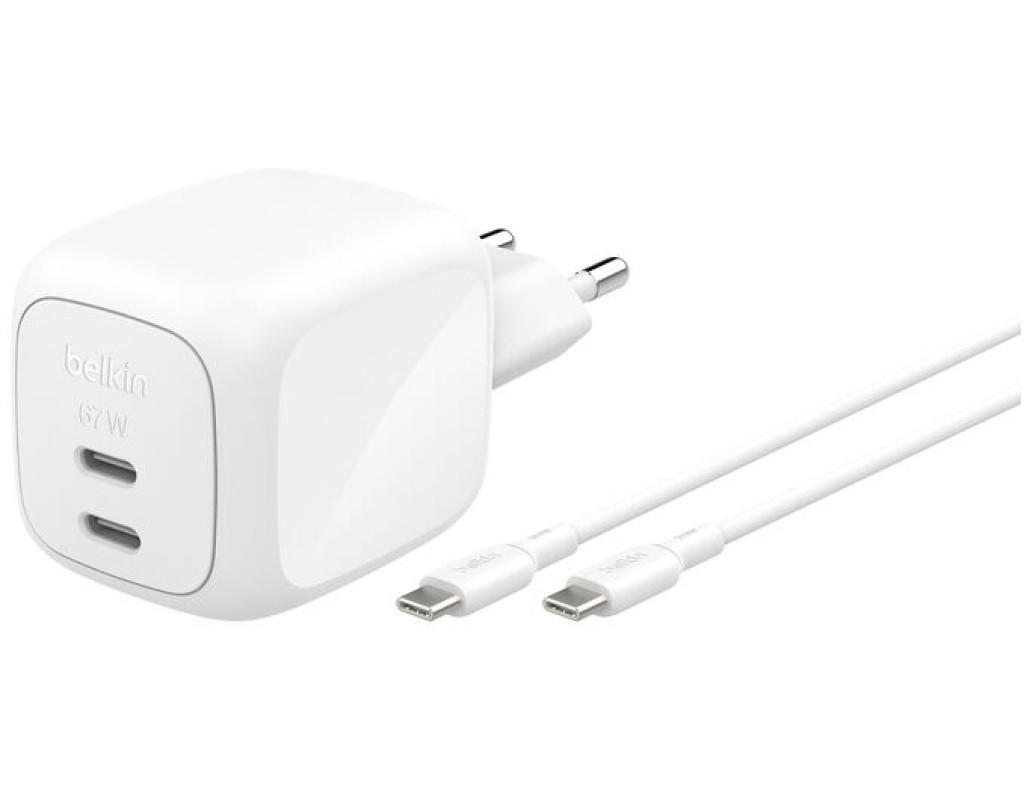 | Мережевий зарядний пристрій Belkin 67 Вт із двома портами USB-C створений для одночасного заряджання кількох мобільних пристроїв. GaN-технологія поєднує високу енергоефективність і компактні габарити. Конфігурація портів оптимізує розподіл потужності залежно від підключення. Конструкція орієнтована на мобільне використання та стабільну роботу в дорозі. Модель постачається з кабелем USB-C > USB-C завдовжки 2 м. |