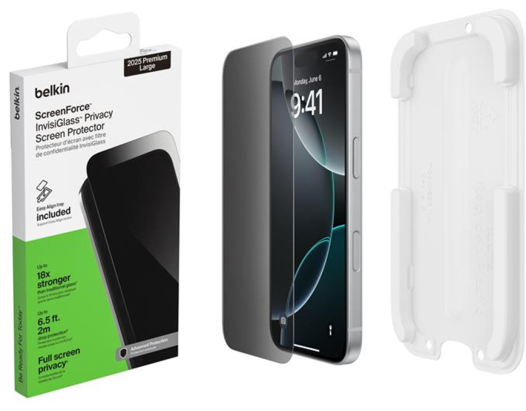 | Belkin Privacy Screen Protector OVA214HQ — захисне скло преміумкласу з фільтром приватності для iPhone 17 Pro Max, створене за технологією іонного обміну InvisiGlass™. У 18 разів міцніше за звичайне, воно забезпечує ефективний захист від падінь, ударів і подряпин, зберігаючи природну чутливість екрана. Фільтр приватності приховує вміст дисплея від сторонніх, а антимікробне покриття зменшує накопичення бактерій. Товщина 0,29 мм і закруглені краї створюють плавне відчуття під час користування. Скло виготовлене з 60% переробленого матеріалу, поєднуючи міцність і екологічність. |