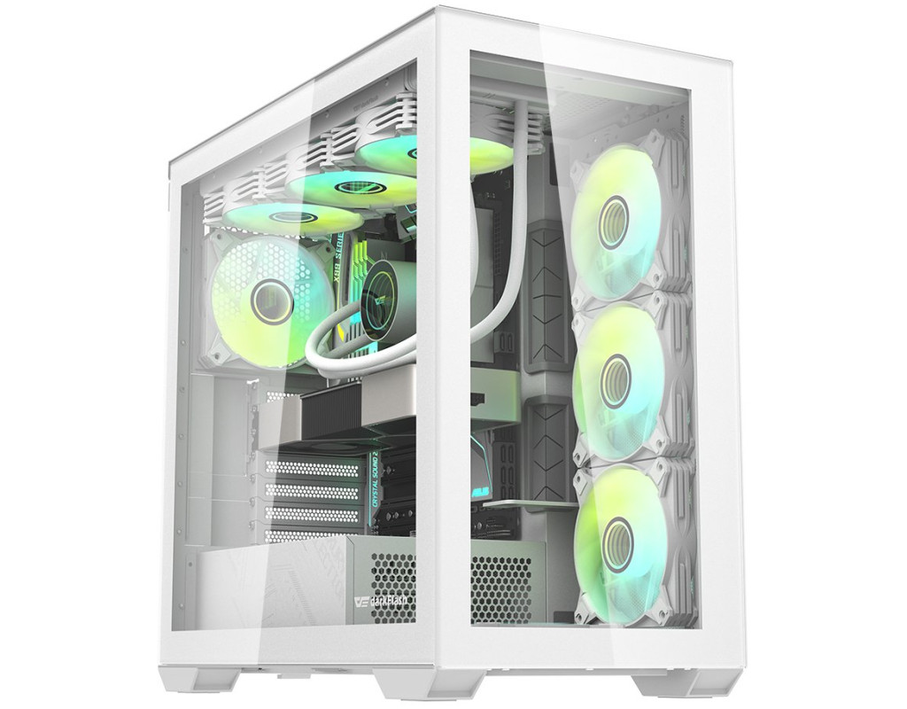 | Корпус DLX4000 від DarkFlash - це захоплюючий корпус для ПК з привабливим дизайном та функціональними особливостями. В корпусі гармонічно поєднуються товстий метал (0.8 мм), загартоване скло та сітчаті панелі для чудової вентиляції. Стильний дизайн створює ефектну геймерську атмосферу, а великий внутрішній простір дозволяє легко монтувати компоненти. Особливості корпусу DLX4000: Відкидні бічні панелі з обох сторін: Корпус оснащений відкидними бічними панелями з обох сторін, що спрощує доступ до внутрішньої частини корпусу та забезпечує зручний монтаж та обслуговування компонентів. Передня панель із загартованого скла та подвійна перфорація на бічній панелі: Корпус має Передню панель із загартованого скла та подвійну перфорацію на бічній панелі, що забезпечує відмінну вентиляцію та оптимальну роботу системи. Бічна панель із загартованого скла: Корпус оснащений бічною панеллю із загартованого скла, що додає елегантності та дозволяє показати внутрішню компонентну частину системи. Велика підтримка вентиляторів: Корпус підтримує до 14 вентиляторів діаметром 120 мм, забезпечуючи потужне охолодження системи. Підтримка рідинного охолодження: Корпус має підтримку рідинного охолодження з радіатором до 360 мм, що забезпечує ефективне розсіювання тепла. Наявність роз'єму Type-C: Корпус оснащений роз'ємом Type-C на передній панелі, що дозволяє зручне підключення сучасних пристроїв. Багатофункціональний тримач: Корпус має багатофункціональний тримач, на якому можна встановити до 3 SSD або HDD диски або 3 вентилятори діаметром 120 мм. Можливість налаштування задньої панелі: Корпус має можливість налаштування задньої панелі в залежності від використовуваної материнської плати, що спрощує монтаж та обслуговування. Модульна конструкція: Корпус має модульну конструкцію, що майже не використовує гвинти, що дозволяє швидку і легку збірку та обслуговування. Підтримка розширених материнських плат: Корпус підтримує материнські плати формату E-ATX і дозволяє встановлення відеокарти довжиною до 425 мм. Захист від пилу: Корпус має вбудований швидкознімний пиловий фільтр на всю довжину корпуса, що забезпечує ефективний захист від пилу. DLX4000 - чудовий вибір для створення потужного ігрового ПК з унікальним стилем та надійністю. |