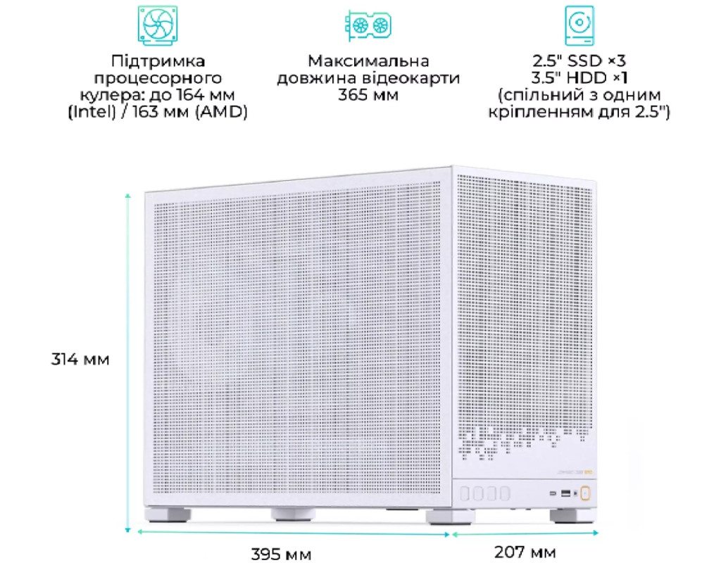 | Корпус для ПК JONSBO D32 STD MESH White є ідеальним вибором для любителів мультимедійних розваг, поєднуючи в собі стильний дизайн, високу функціональність та якість, на яку можна покластися. Його елегантний білий колір додасть неповторного стилю вашій робочій станції, а продумана конструкція забезпечить надійність та зручність використання. Відносячись до класу мультимедійних корпусів, JONSBO D32 вдало поєднує компактність та місткість, що дозволяє ефективно використовувати місце під різні компоненти. Його типорозмір Minitower робить цей корпус ідеальним вибором для тих, хто прагне оптимізувати простір на робочому столі без жертвування продуктивністю. Підтримуючи материнські плати формату Micro-ATX та Mini-ITX, цей корпус гнучко адаптується до ваших технічних вимог. Один з ключових моментів — це розташування без блоку живлення, що дозволяє користувачам обрати найкращий для їхніх потреб блок живлення. Його верхнє розташування забезпечує оптимальну циркуляцію повітря, зберігаючи ваші компоненти в прохолоді навіть під час максимальних навантажень. Крім того, корпус передбачає один внутрішній відсік 3.5 дюйма та три відсіки 2.5 дюйма, що надає достатньо місця для зберігання даних. При створенні корпусу JONSBO D32 продумано все до найменших деталей. З його 4 слотами розширення ви отримаєте можливість без проблем встановити необхідні компоненти та пристрої. Наявність просторих місць для додаткових вентиляторів (знизу 3x12, 2x14 см; зверху 2x12 або 1x14 см; та ззаду 1x12 см) робить його ідеальним для тих, хто цінує оптимальне охолодження свого комп'ютера. Особливу увагу приділено чистоті та безпеці системи, завдяки вбудованому пиловому фільтру, який забезпечує захист від пилу й уповільнює накопичення бруду всередині корпусу. Це дозволяє значно продовжити термін служби ваших компонентів. Ергономічно передбачені зовнішні роз'єми (Audio, 1 x USB 3.2, 1 x USB 3.2 type C) дозволяють зручно підключати периферійні пристрої, знижуючи потребу в додаткових адаптерах та кабелях. JONSBO D32 може вмістити довгі відеокарти довжиною до 365 мм, що робить його відмінним вибором для геймерів та креаторів контенту, які потребують потужних графічних рішень. Максимальна висота процесорного кулера становить 163 мм, що дозволяє використовувати високоефективні кулери для підтримання оптимальної температури. Максимальна довжина блоку живлення до 170 мм забезпечує гнучкість у виборі потрібних компонентів, відповідаючи найвибагливішим потребам користувача. З JONSBO D32 STD MESH White ви отримаєте корпус, що поєднує у собі всі необхідні елементи для створення ідеальної мультимедійної системи з акцентом на якість, функціональність та стиль. |