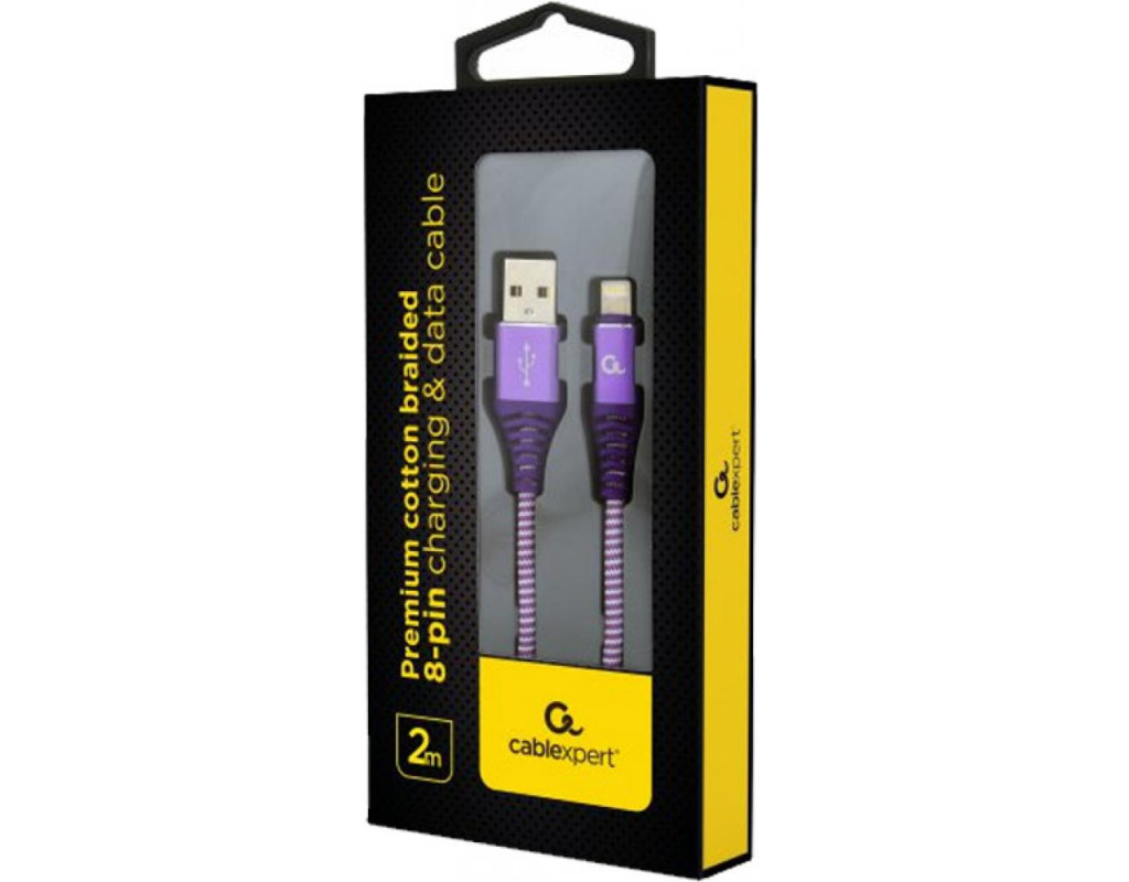 Тип - кабель, Тип конектора 1 - USB 2.0, Тип конектора 2 - Lightning, довжина - 2 м, Номінальний струм - 2.1 А, тканинне обплетення, Колір - пурпурний