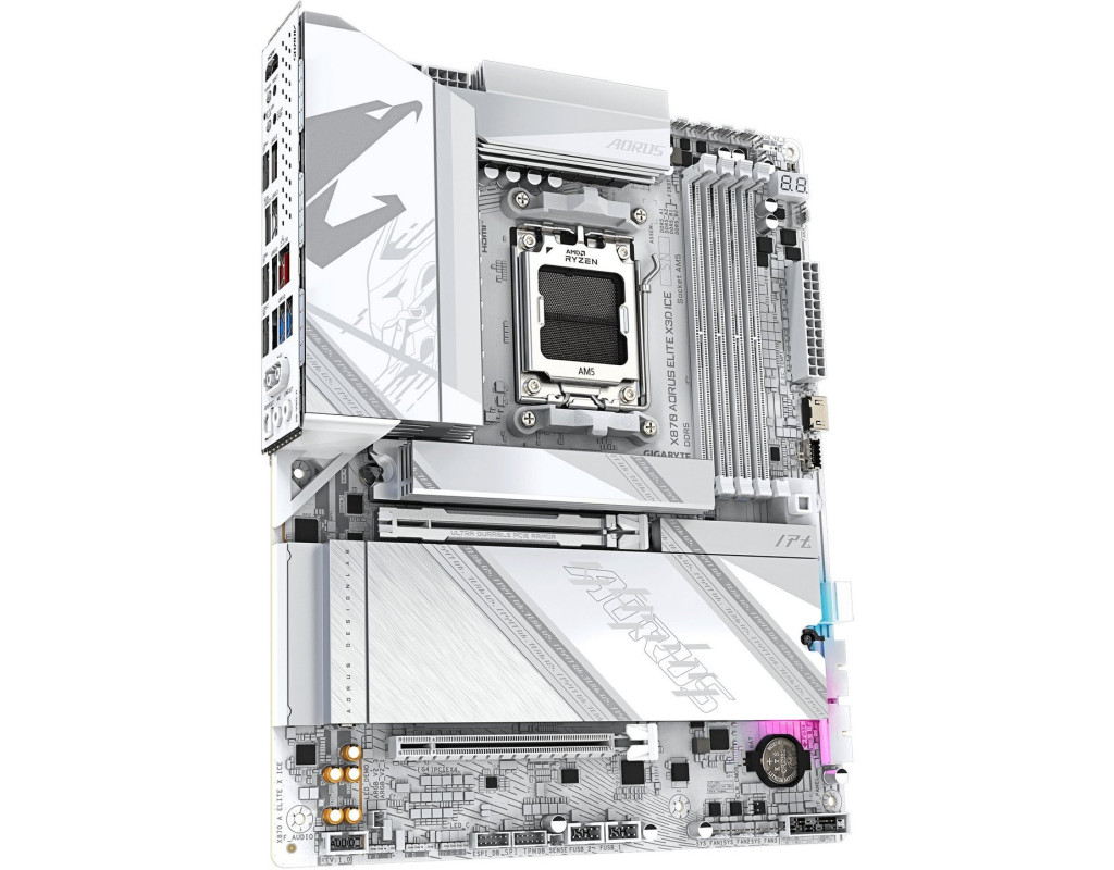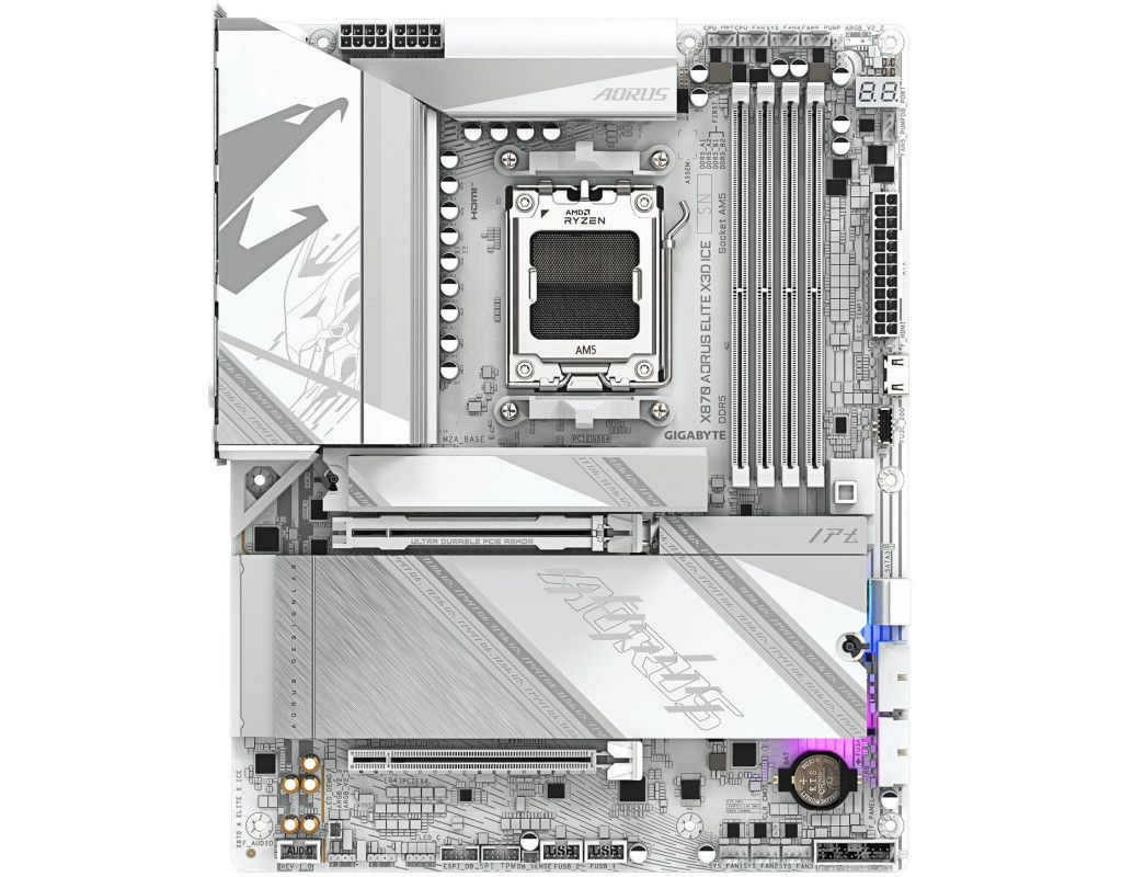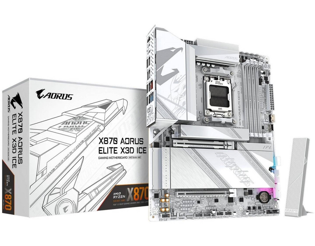 | Материнська плата Gigabyte X870 AORUS ELITE X3D ICE — це високопродуктивна модель на базі чипсета AMD X870 для сокета AM5, яка ідеально підходить для ентузіастів і геймерів. Завдяки X3D Turbo Mode 2.0 підтримується інтелектуальне прискорення продуктивності для процесорів Ryzen X3D — з AI-моделлю, що динамічно оптимізує параметри системи в реальному часі. Плата підтримує DDR5-пам’ять у 4 слотах з можливістю розгону до високих частот.