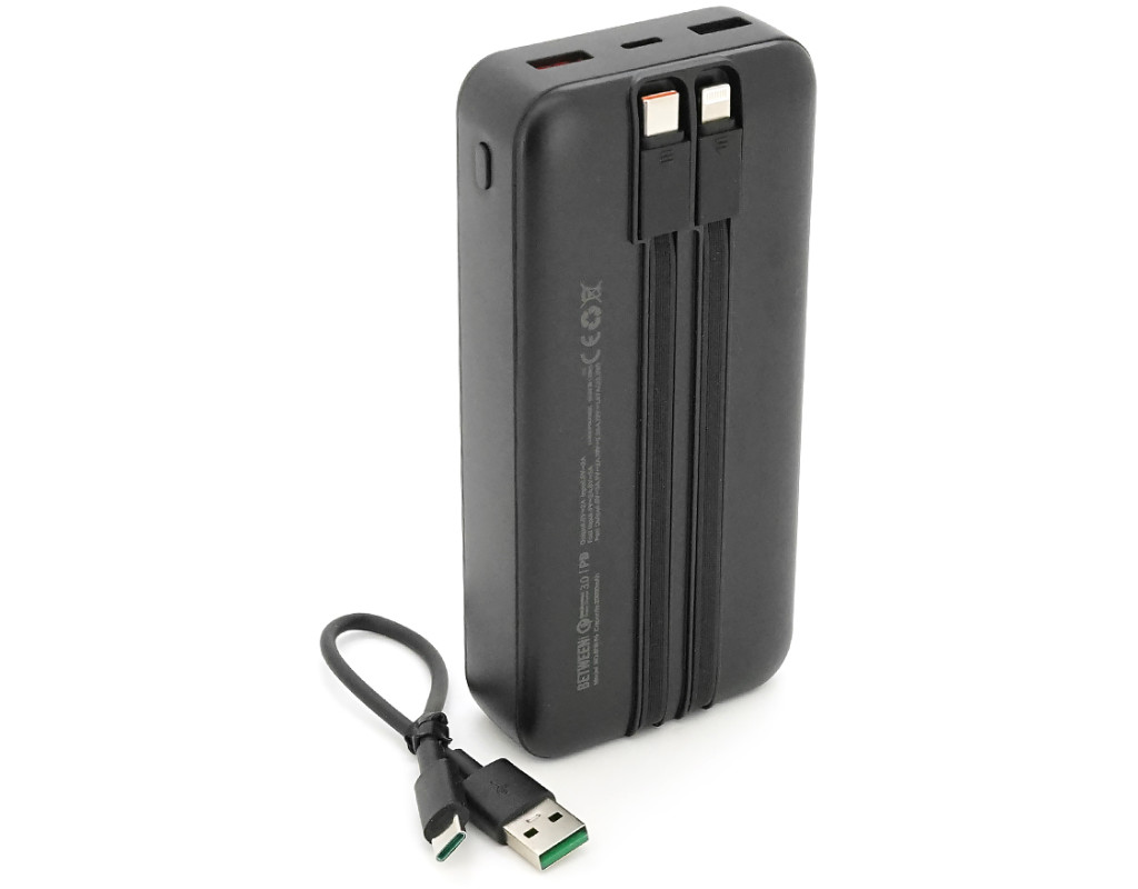 Power bank BETWEEN BTW-P6 20000mAh, 22.5W, 2 кабелі: Type-C+Lighting, Black, 460g, Box