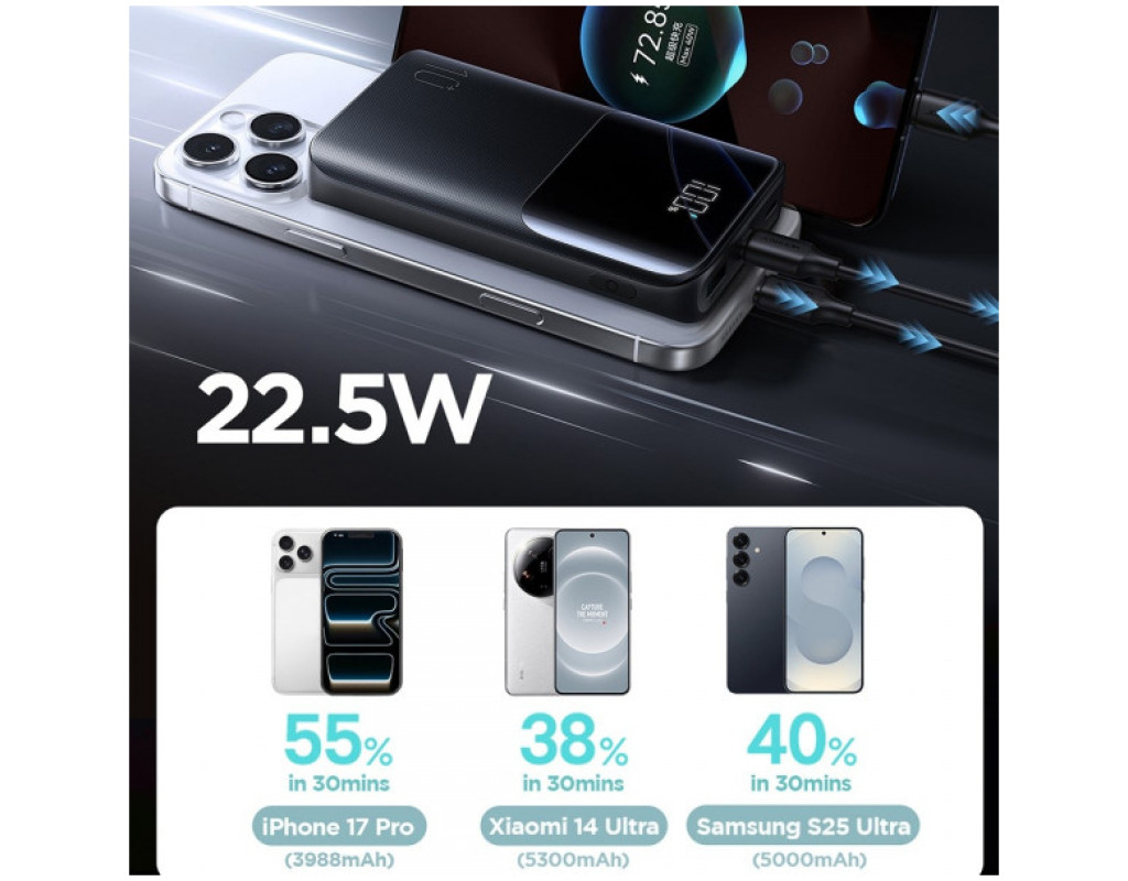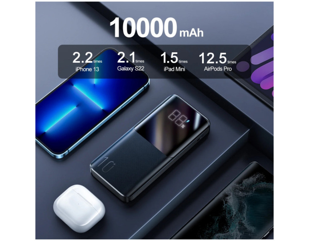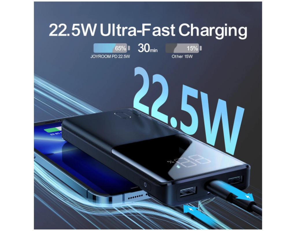Зовнішній зарядний пристрій Joyroom JR-QP191 Joyroom JR-QP191 – це стильний та якісно виконаний зовнішній акумулятор ємністю 10000 мАг. Він оснащений 3 вихідними портами – двома USB типу A та одним типу C (також може служити вхідним портом) та вхідним портом microUSB. Зовнішній акумулятор JR-QP191 виготовлений з високоякісного ABS-пластику та вогнестійкого ПК. Він також має великий дисплей, який інформує про рівень заряду, що залишився. Він також може містити датчики, такі як: захисту від перенапруги, перевантаження, короткого замикання. Великий накопичувач енергії у вашій кишені. Зовнішній акумулятор від відомого та шанованого бренду Joyroom – це гаджет, який має бути у кожного мандрівника. Літій-полімерний акумулятор ємністю 10 000 мАг дозволяє заряджати телефон кілька разів. Заряджайте кілька пристроїв одночасно! Пристрій має 3 вихідні роз'єми. Завдяки цьому ви можете заряджати, наприклад, смартфон, планшет та навушники одночасно! Крім того, повербанк підтримує багато протоколів швидкої зарядки, таких як Power Delivery, Quick Charge 3.0 та інші. |