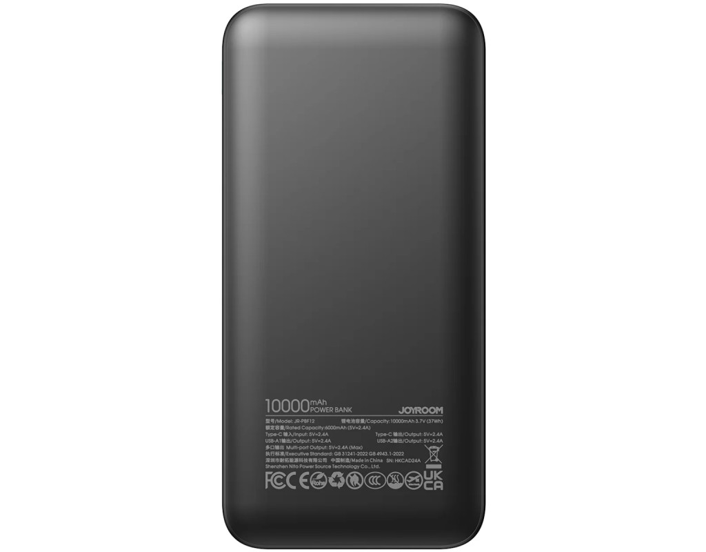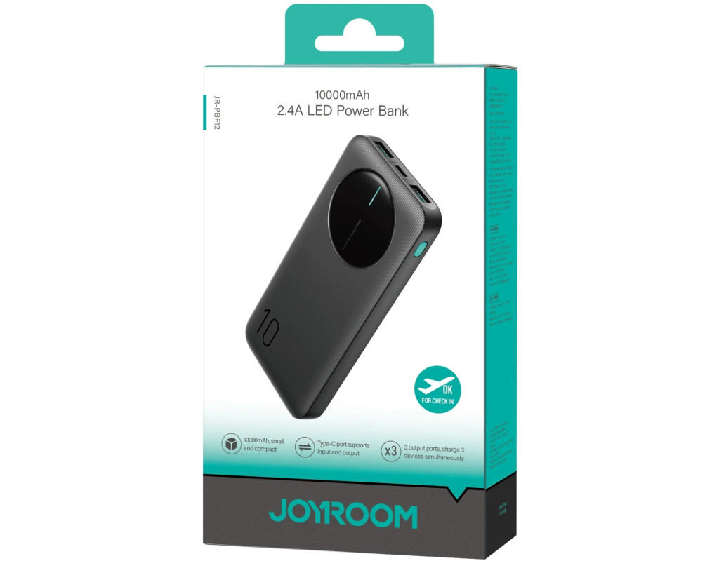 УМБ Joyroom 10000mAh 12W 2xUSB-A, USB-C In/Out, Black (JR-PBF12)