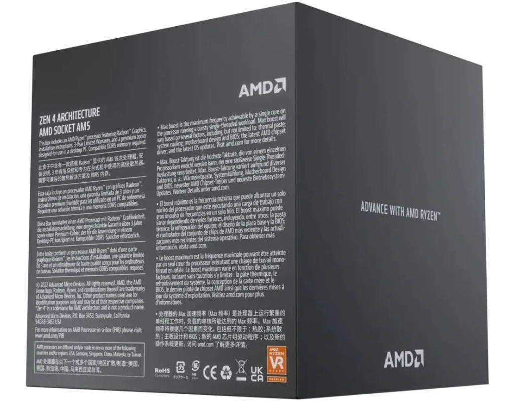 AMD Ryzen 7 7700 — новітній процесор від компанії AMD. Даний процесор характеризується високопродуктивною графікою і може працювати у парі з відеокартами для виняткового ігрового досвіду та роботи з графічним контентом. Він розроблений на базі інноваційної архітектури Zen 4. У ній використовується потужний механізм виконання, а також підтримується функція одночасної багатопоточності. Даний процесор розроблений для ефективного використання ресурсів та забезпечення максимальної обчислювальної продуктивності. Частота складає 3.8 ГГц з максимально можливим значенням у 5.3 ГГц. Висока продуктивність досягається завдяки 8 ядрам і можливості проведення обчислень у 16 потоків. Даний процесор забезпечить максимальний ефект при мінімальній енергозатратності та підтримає будь-які хмарні обчислення, технології віртуальної реальності, ігрові процеси, демонструючи продуктивність промислового рівня. Вбудований штучний інтелект дозволяє процесору ефективніше справлятися з виконанням складних задач, а розроблені алгоритми навчання здатні заздалегідь передбачати і готувати для ПО необхідні дані, що забезпечує шалену швидкість обчислень і мінімальний час відгуку. |