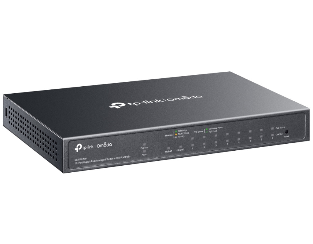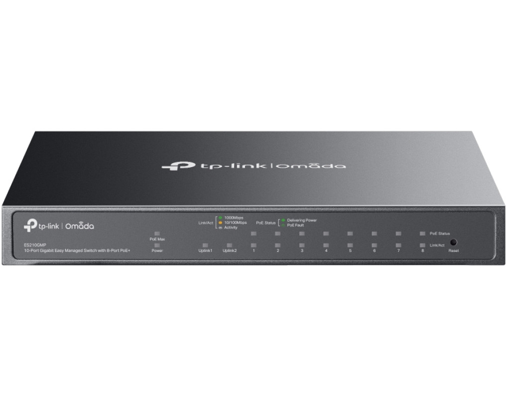 | TP-LINK ES210GMP — це 10-портовий гігабітний WebSmart-комутатор з 8 портами PoE+ (802.3af/at) та бюджетом живлення 123 Вт. Оснащений 1 портом RJ45 і 1 комбінованим SFP/RJ45, підтримує передачу PoE до 250 м, QoS, VLAN, IGMP Snooping та автоматичне відновлення PoE. |