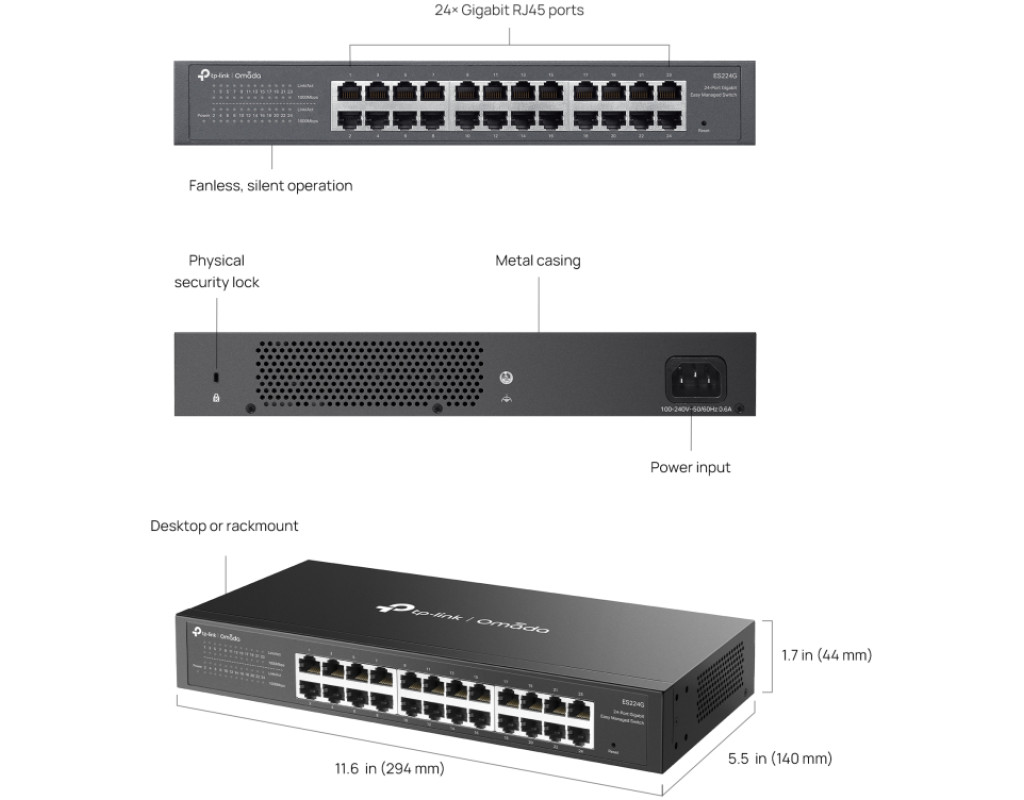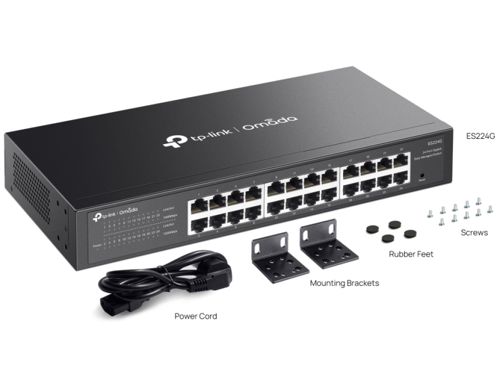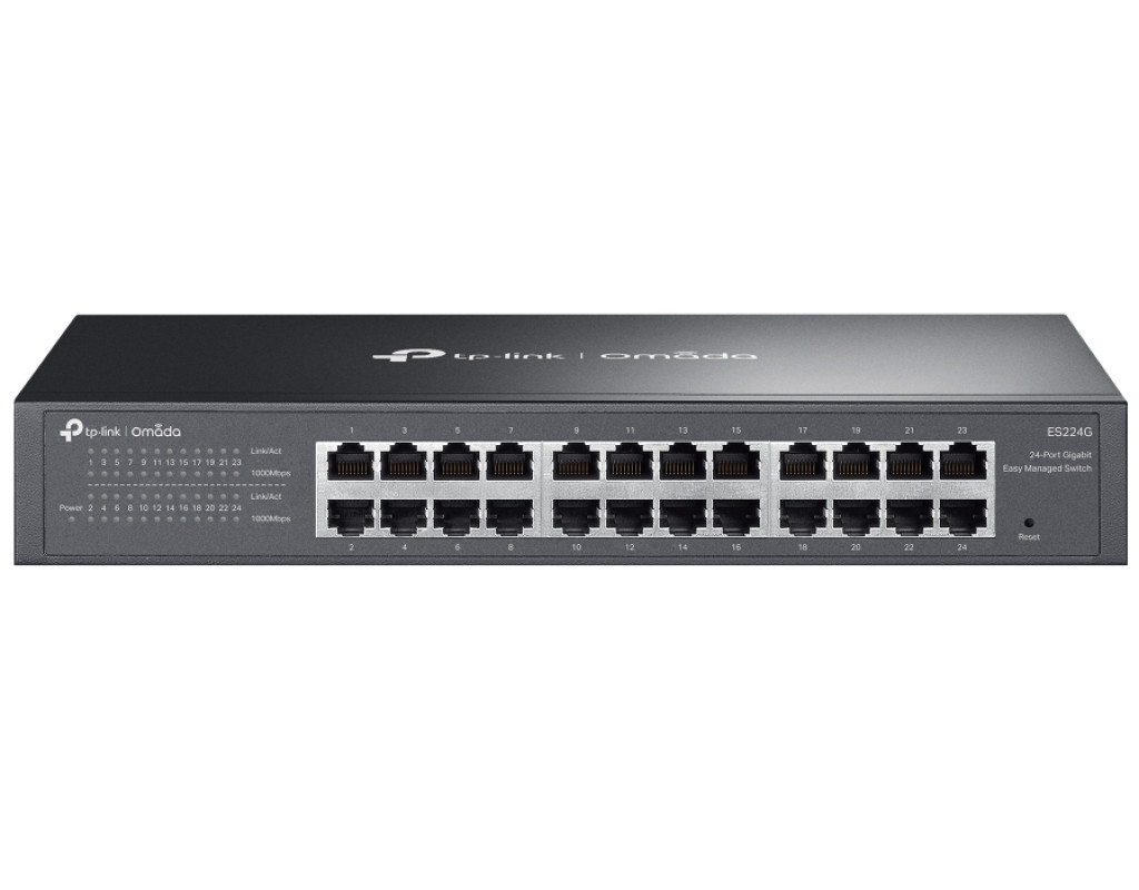 | TP-LINK ES224G – це 24-портовий гігабітний WebSmart-комутатор серії Omada. Забезпечує швидке підключення, хмарне керування, VLAN, ізоляцію портів, IGMP Snooping та QoS для стабільної роботи мережі. Безвентиляторна конструкція гарантує тишу, а металевий корпус підходить для настільного та стійкового монтажу. |