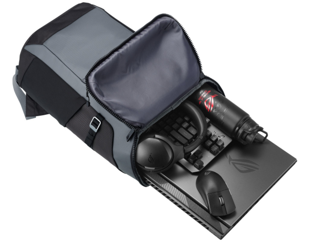 ROG Ranger BP2701 Gaming Backpack (Cybertext Edition) — стильний і місткий геймерський рюкзак, створений для тих, хто носить із собою не лише ноутбук, а й цілий “арсенал” техніки. Завдяки об’єму 22 л і продуманій системі відділень він легко вміщує ноутбук до 17–18", аксесуари, зарядні пристрої та особисті речі — і все це з надійним захистом у дорозі. Модель отримала впізнаваний дизайн Cybertext Edition: сміливі лінії, логотип ROG і світловідбивну поверхню, яка виглядає ефектно та підвищує помітність у темний час доби. Рюкзак виготовлений із водовідштовхувальних і стійких до подряпин матеріалів (штучна шкіра та поліуретан), а водовідштовхувальні блискавки додатково захищають вміст від негоди. Для максимального комфорту передбачена ергономічна спинка з трьома великими сітчастими вставками, які створюють повітряну кишеню для кращої вентиляції. Регульований нагрудний ремінь запобігає ковзанню та допомагає надійно зафіксувати рюкзак під час активного руху. Також є вбудований багажний ремінь — Ranger BP2701 можна легко закріпити на валізі. Для цінних речей передбачені приховані задні кишені, що додають безпеки під час подорожей або пересування містом. Основні характеристики: