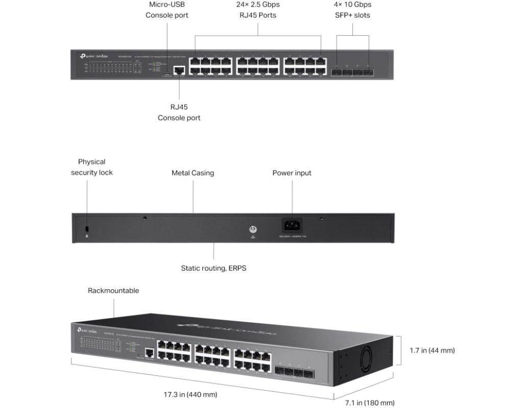 | TP-LINK SG3428X-M2 – це керований L2+ комутатор із 24 портами 2.5G та чотирма високошвидкісними SFP+ 10G. Він створений для мереж, де потрібна висока пропускна здатність і стабільне з’єднання. Пристрій підтримує як централізоване хмарне керування Omada, так і локальні інструменти адміністрування. Комутатор оснащено широкими можливостями для маршрутизації, VLAN, безпеки та контролю трафіку. Міцний металевий корпус і підтримка монтажу в стійку забезпечують довготривалу роботу. |