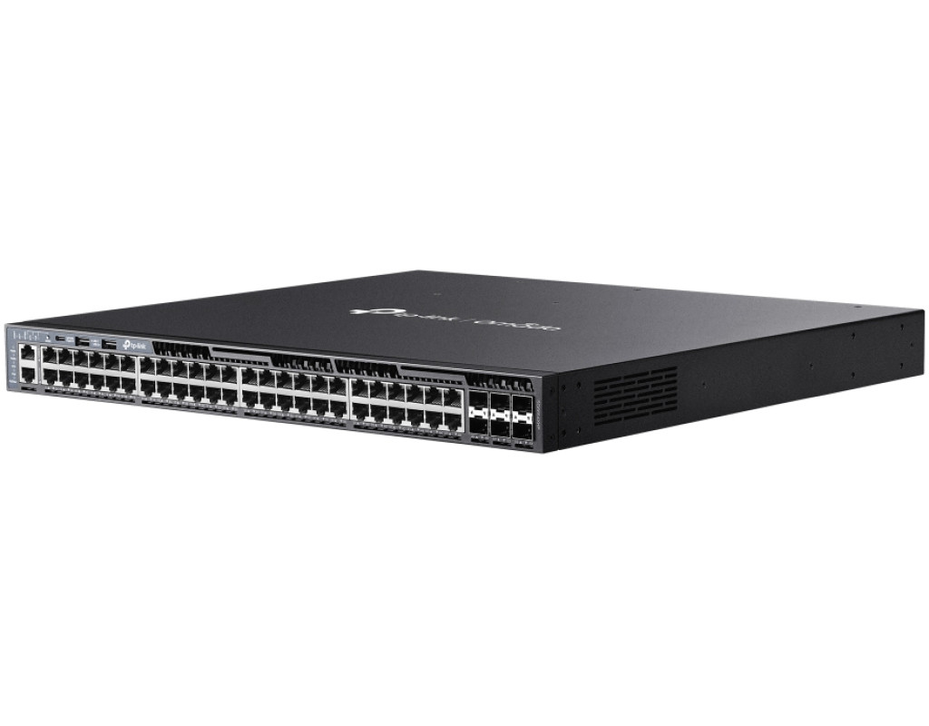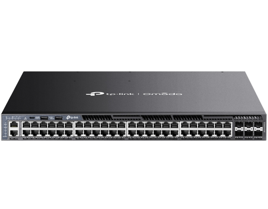 | Omada SG6654XHP, вдосконалений комутатор PoE+, керований L3, створений для вимог рівня конвергенції з такими функціями, як маршрутизація L3, швидке дротове підключення зі швидкістю 10 Гбіт/с, стекування та резервні джерела живлення. Він пропонує вражаючий бюджет PoE 1440 Вт*, 48× гігабітні порти RJ45 PoE+, 6× слоти SFP+ 10 Гбіт/с, а також фізичне стекування. |