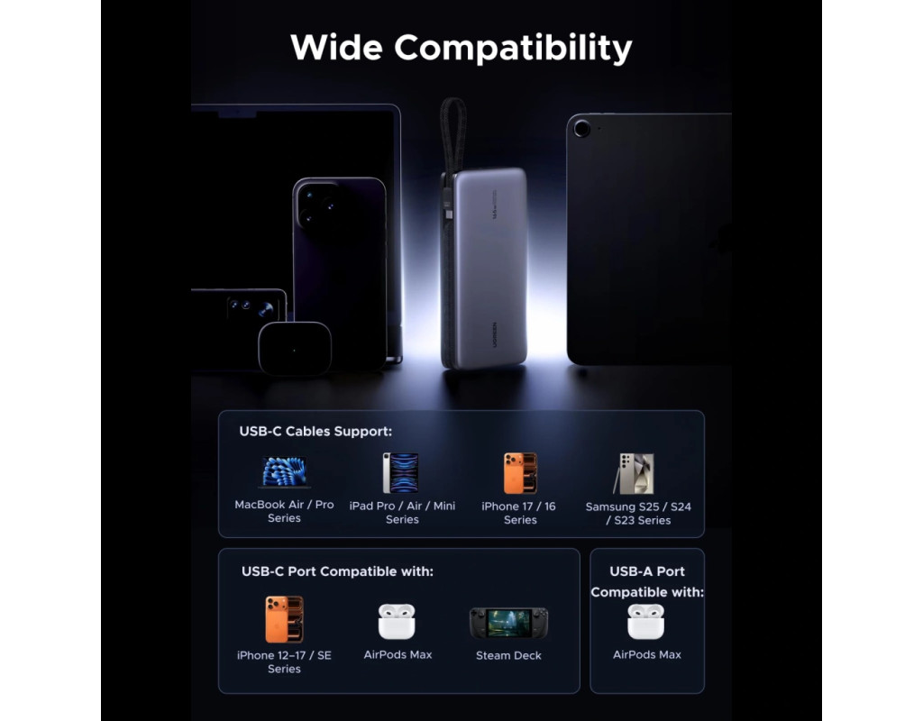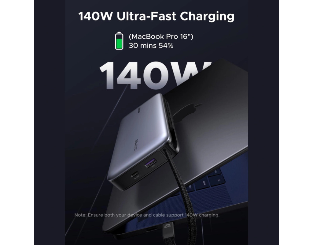 165 W, Power Delivery, Quick Charge 3.0, З вбудованим кабелем, цифровий дисплей |