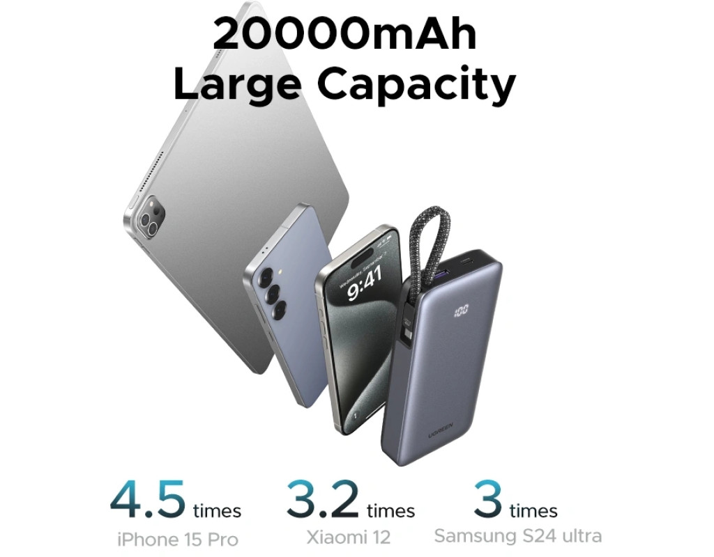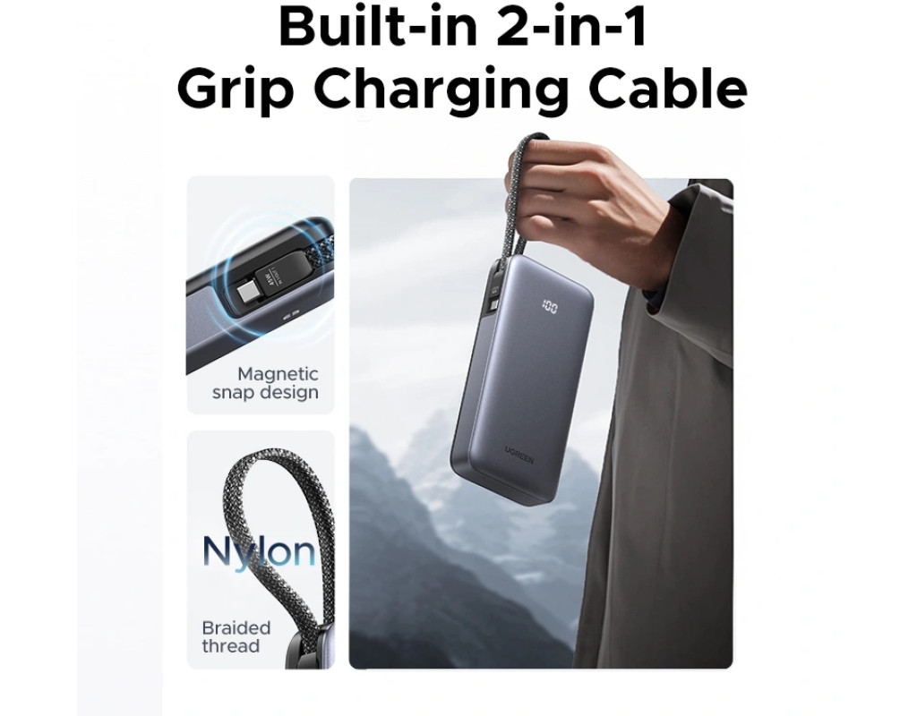 Power Delivery, Quick Charge 3.0, З вбудованим кабелем, цифровий дисплей |