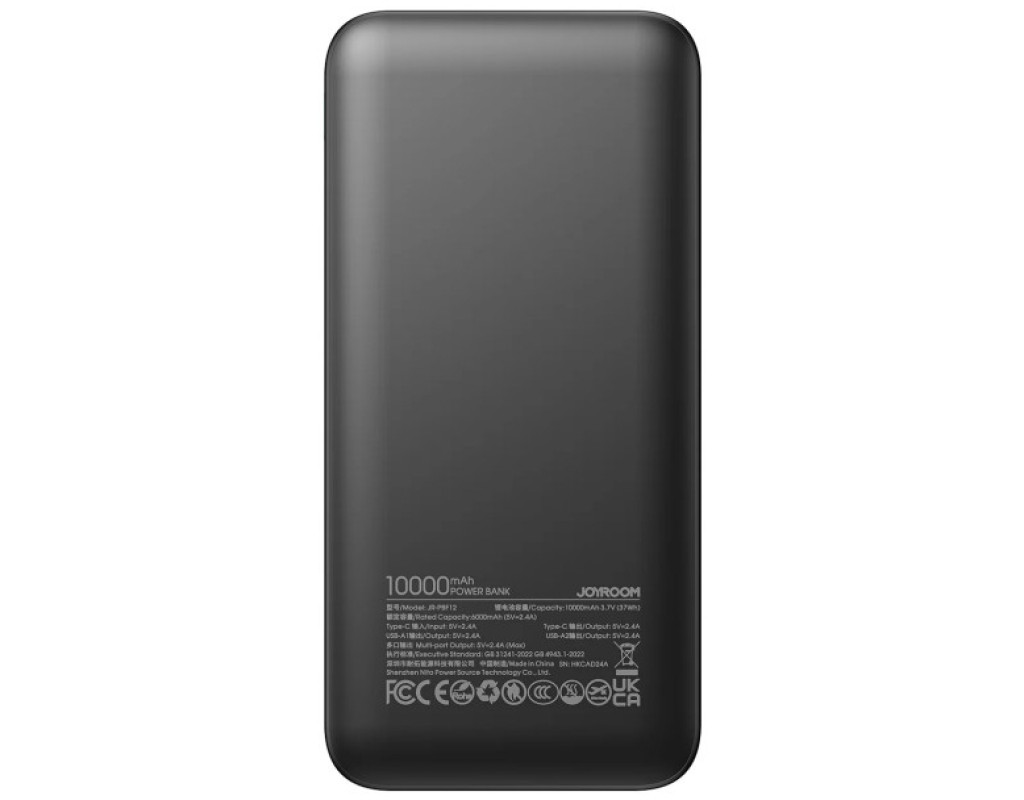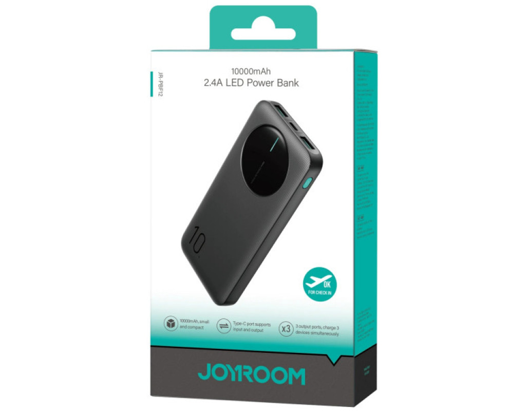 Батарея універсальна JOYROOM 10000mAh 12W 2*USB-A, USB-C In/Out, Black (JR-PBF12 / 6956116713256)
