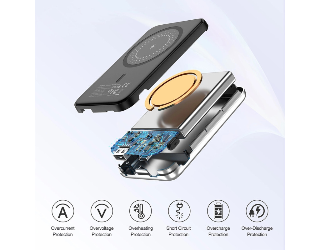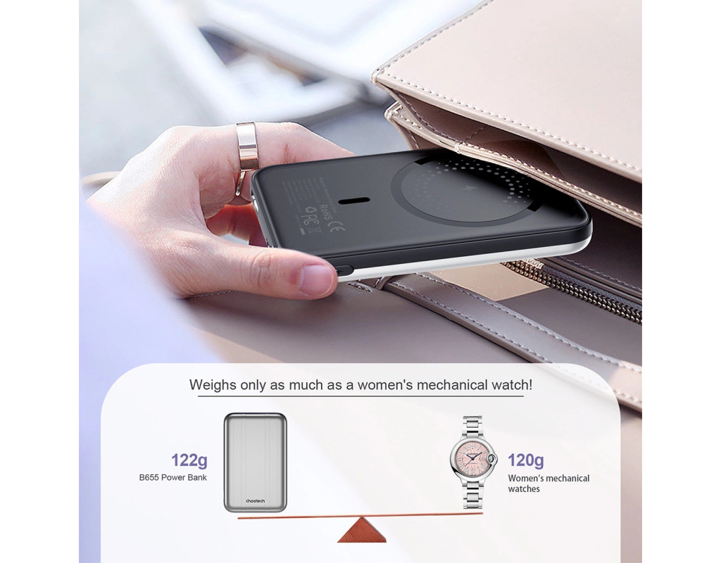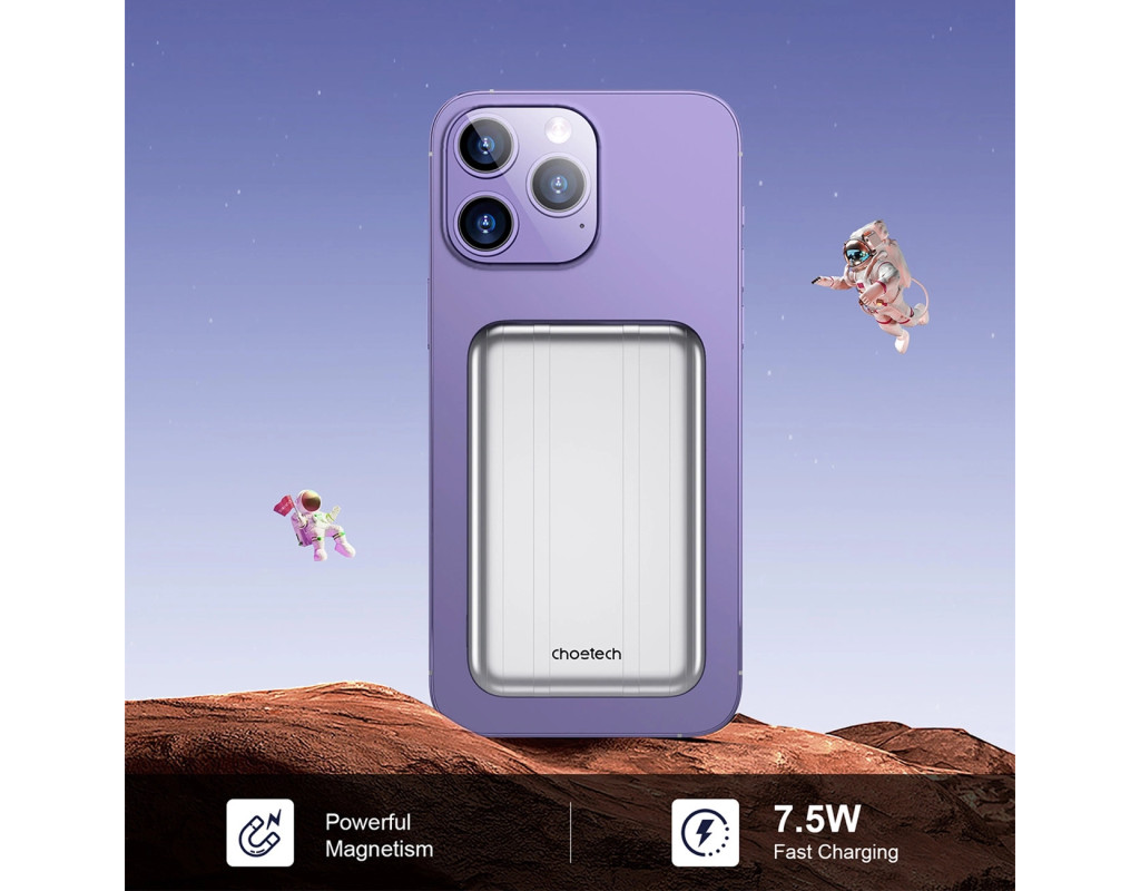 УМБ Choetech Magnetic Wireless 5000mAh USB-A,USB-C In/Out B655 mini silver