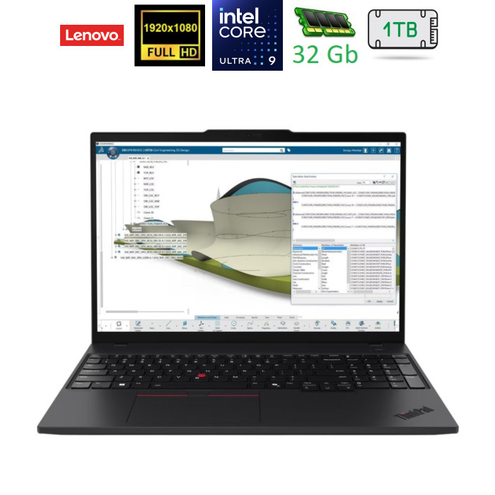 16", 1920x1200 (WUXGA), IPS, 400nits, Intel Core Ultra 9 285H (2.7 - 5.4 ГГц), 32 ГБ, SSD - 1 ТБ, Intel Arc 140T, Windows 11 Pro, 75 Втг, підсвічування клавіатури, гніздо для замка Kensington, сканер відбитків пальців, TPM модуль, зарядка від USB, українська клавіатура, 1.82 кг, чорний