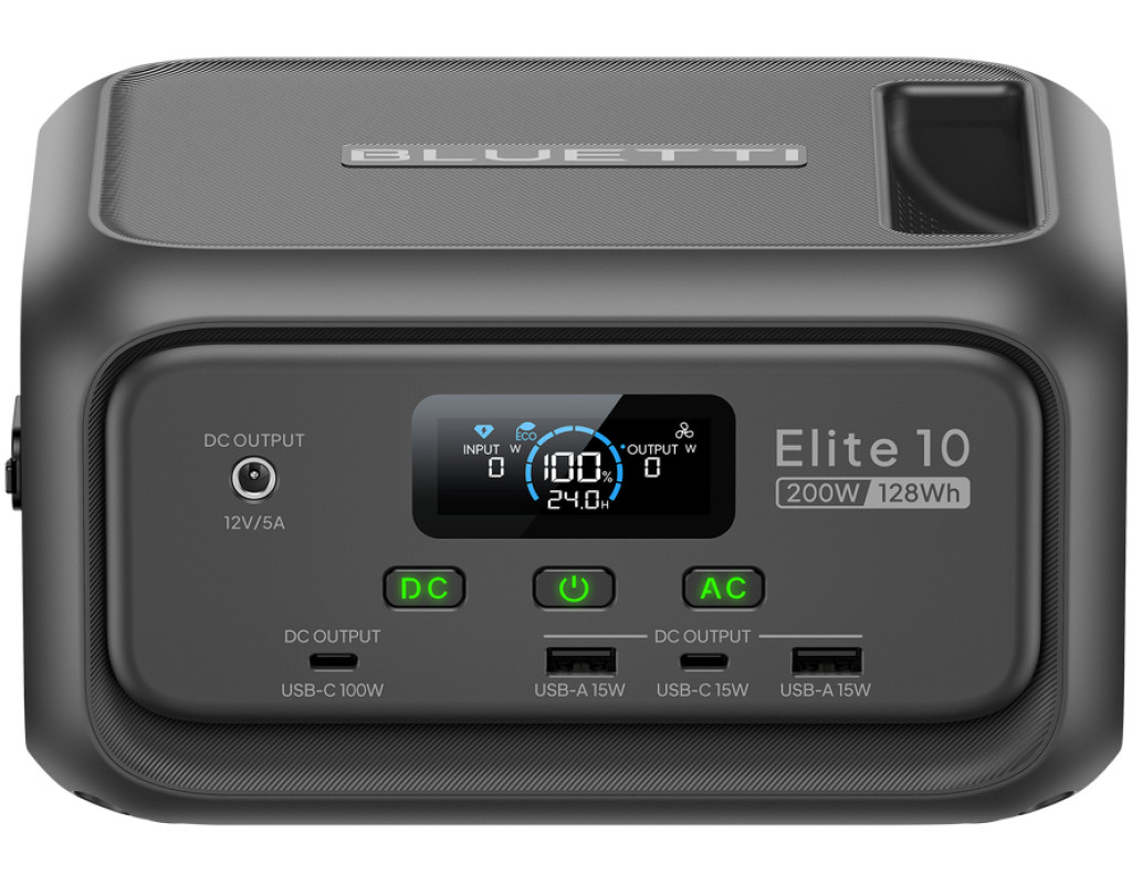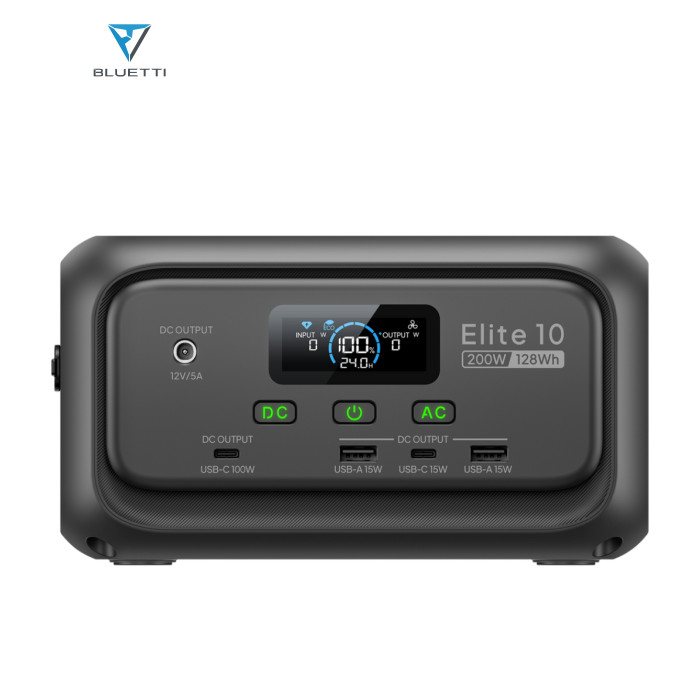 Корпус виконаний з вогнестійкого полікарбонату, а матове покриття стійке до подряпин. Функція ДБЖ. Можна використовувати як безперебійник для роутера — під час вимкнення світла інтернет не зникне, оскільки перемикання відбувається миттєво. Вбудований LED-ліхтар має три режими (тепле світло, холодне світло та SOS) і може працювати до п’ятидесяти годин від одного заряду. Рівень шуму під час роботи не перевищує 45 дБ, що комфортно для використання вночі. Bluetti Elite 10 підтримує керування через Bluetooth для моніторингу залишку заряду та керування портами. |
