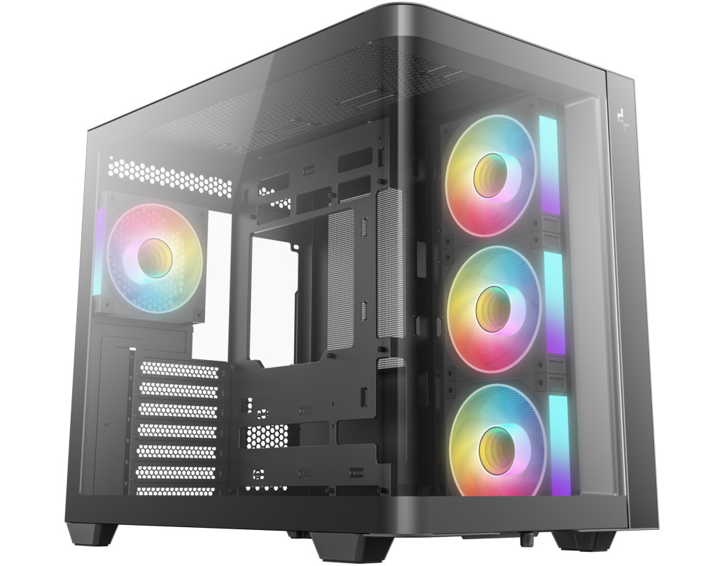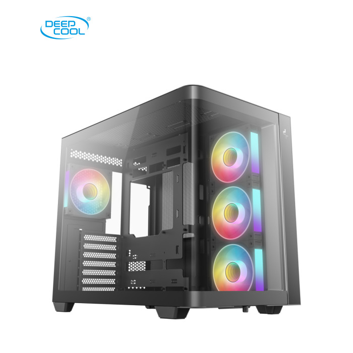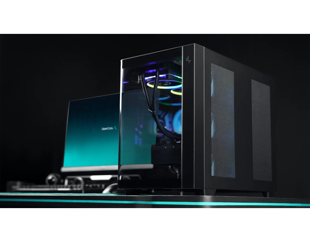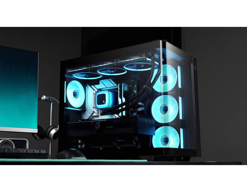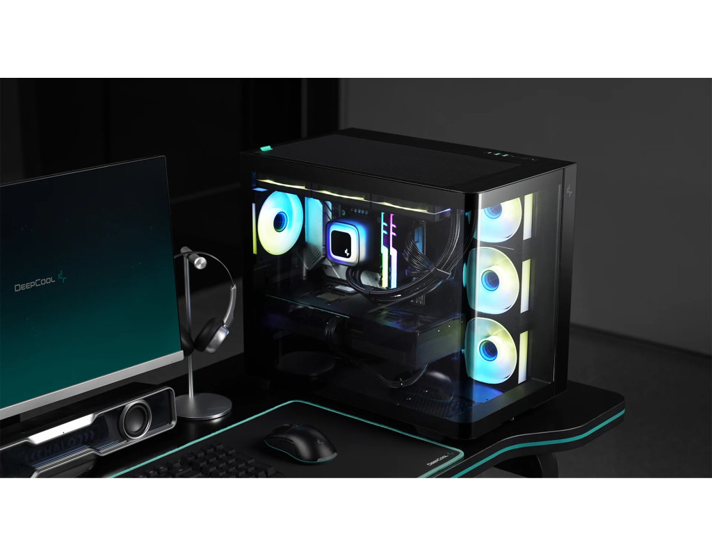 | CG530U 4F - це панорамний корпус з вигнутим склом та двокамерною конструкцією. Завдяки чотирьом встановленим вентиляторам ARGB він повністю оснащений для ефективного охолодження та підсвічування.