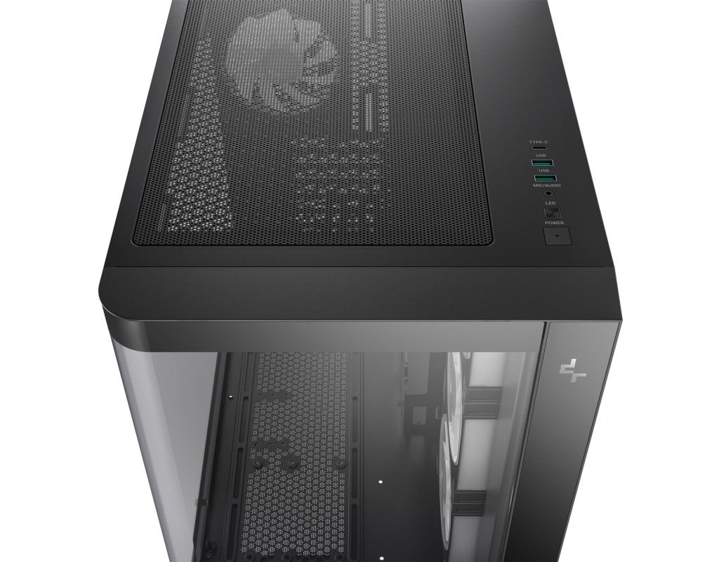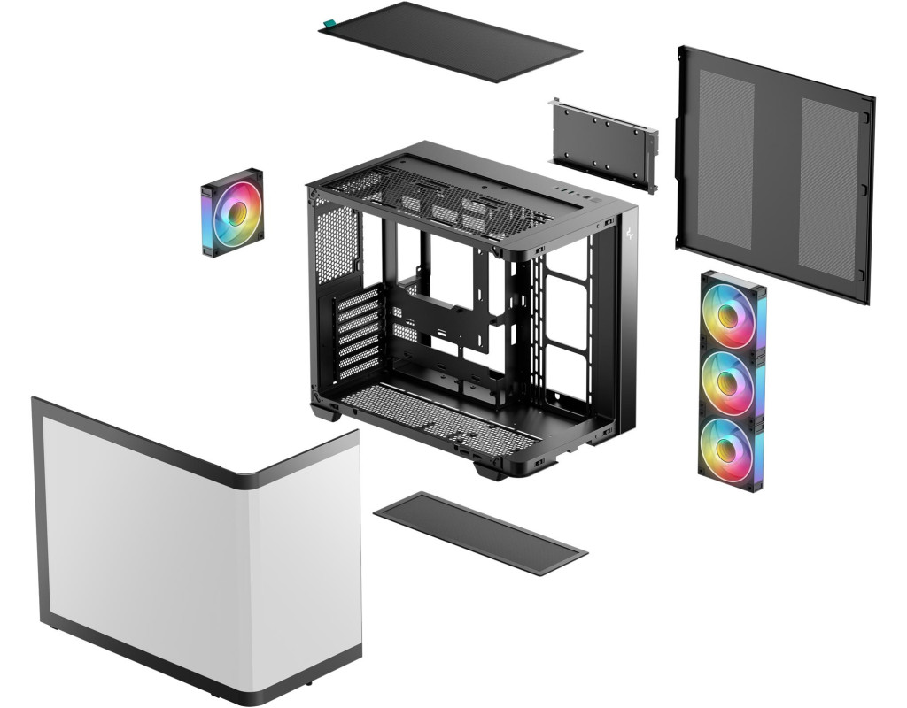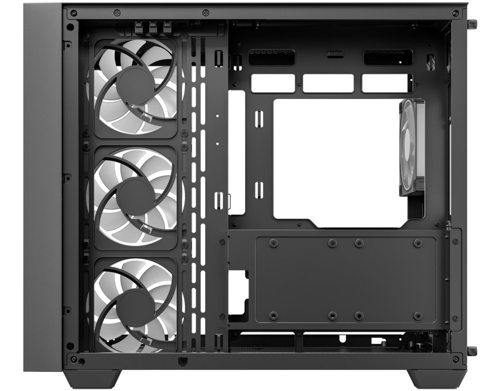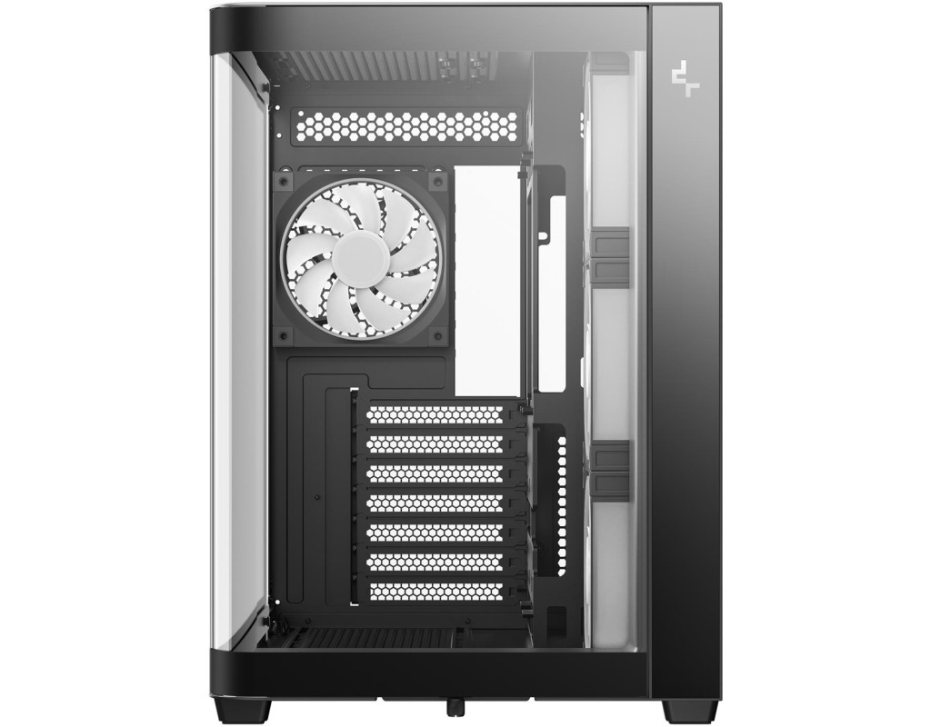 | CG530U 4F - це панорамний корпус з вигнутим склом та двокамерною конструкцією. Завдяки чотирьом встановленим вентиляторам ARGB він повністю оснащений для ефективного охолодження та підсвічування.