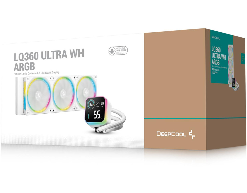 | DeepCool LQ360 Ultra ARGB пропонує значні покращення ефективності охолодження та візуального блиску завдяки насосу 6-го покоління та вентиляторам FL12, зберігаючи при цьому знайомий дизайн LQ з магнітним блоком насоса ARGB Halo та сегментованим РК-екраном.