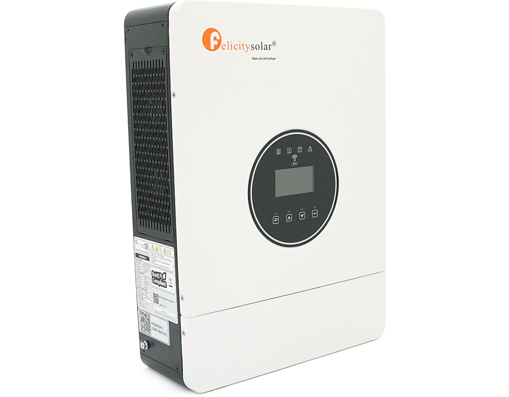 | Гібридний інвертор Felicity IVEM4024-II потужністю 4 кВА (4 кВт) - це компактний і багатофункціональний пристрій, що поєднує функції потужного інвертора з чистою синусоїдою, інтелектуального MPPT-контролера і автоматичного зарядного пристрою. Модель призначена для роботи з 24-вольтовими акумуляторними батареями та оснащена широким діапазоном вхідної напруги для сонячних панелей, що дозволяє ефективно використовувати сонячну енергію навіть за умов змінного освітлення. Вбудований Wi-Fi модуль забезпечує зручний віддалений моніторинг та керування через мобільний додаток. - Чиста синусоїда на виході, що забезпечує ідеальне харчування для будь-якого навантаження, включаючи чутливу електроніку та двигуни. - Вбудований MPPT-контролер з максимальним струмом заряду до 120А та вхідною потужністю до 6000 Вт для ефективного використання сонячної енергії. - Широкий діапазон вхідної напруги MPPT від 60 до 500 В дозволяє підключати різні конфігурації сонячних панелей. - Універсальний порт генератора (GEN), який може бути переключений у режим 'розумного навантаження' (Smart Load) з можливістю програмування часу увімкнення / відключення. - Триступінчастий алгоритм заряду (Boost CC, Boost CV, Float) для продовження терміну служби акумуляторів. - Підтримка різних типів батарей: AGM, Flooded, Self-defined, а також літієвих (LiFePO4) з можливістю зв`язку протоколу BMS. - Програмовані режими роботи: пріоритет мережі, пріоритет сонячної енергії, пріоритет батареї (SBU) для максимальної гнучкості. - Можливість роботи без акумулятора - живлення навантаження безпосередньо від сонячних панелей за наявності сонця. - Функція холодного старту та активації літієвих батарей для запуску системи у будь-яких умовах. - Інтелектуальна зарядка від мережі з регульованим струмом від 10 до 120 А; - Вбудований Wi-Fi модуль для віддаленого моніторингу та керування через мобільний додаток (підтримка Android та iOS). - Інформативний РК-дисплей для моніторингу всіх параметрів роботи та зручне меню налаштувань. - Функція запису та відображення накопиченої енергії (PV generated, Load consumed) за день, місяць, рік та всього часу роботи. - Програмований сухий контакт (dry contact) для керування зовнішніми пристроями. - Компактні розміри та легка вага (всього 10.4 кг) для зручності монтажу. Технічні характеристики: • Виробник: Felicity (Felicitysolar) • Модель: IVEM4024-II • Тип пристрою: гібридний інвертор із MPPT-контролером • Номінальна потужність: 4000 ВА / 4000 Вт • Номінальна напруга акумулятора: 24 В • Вихідна напруга: 230 В змінного струму ±5% (чиста синусоїда) • Вихідна частота: 50 / 60 Гц ±0.3 Гц (регулюється) • Вхідна напруга мережі: 90-280 В змінного струму (для побутової техніки) / 180-280 В (для комп`ютерів) • Вхідні параметри PV (сонячних панелей): - Максимальна напруга холостого ходу: 500 В - Діапазон MPPT: 60 - 500 В - Максимальна вхідна потужність: 6000 Вт - Максимальний вхідний струм: 27 А - Максимальний струм заряду від PV: 120 А - Мінімальна напруга запуску: 60 В • Зарядний пристрій від мережі: - Максимальний струм заряду: 120 А (регулюється від 10 до 120 А) - Напруга заряду: 28.2 (AGM), 29.2 (Flooded), до 30 В (Self-defined / Lithium) • Параметри інвертора: - Пікова потужність: 2-кратне перевищення номіналу протягом 5 секунд - ККД (піковий): 93% - ККД у режимі мережі: >93% • Режими пріоритету: Utility First, Solar First, SBU (Solar-Battery-Utility) • Комунікаційні інтерфейси: RS232, BMS (CAN / RS485), Wi-Fi (вбудований) • Захисту: від перевантаження, короткого замикання, перегріву, 