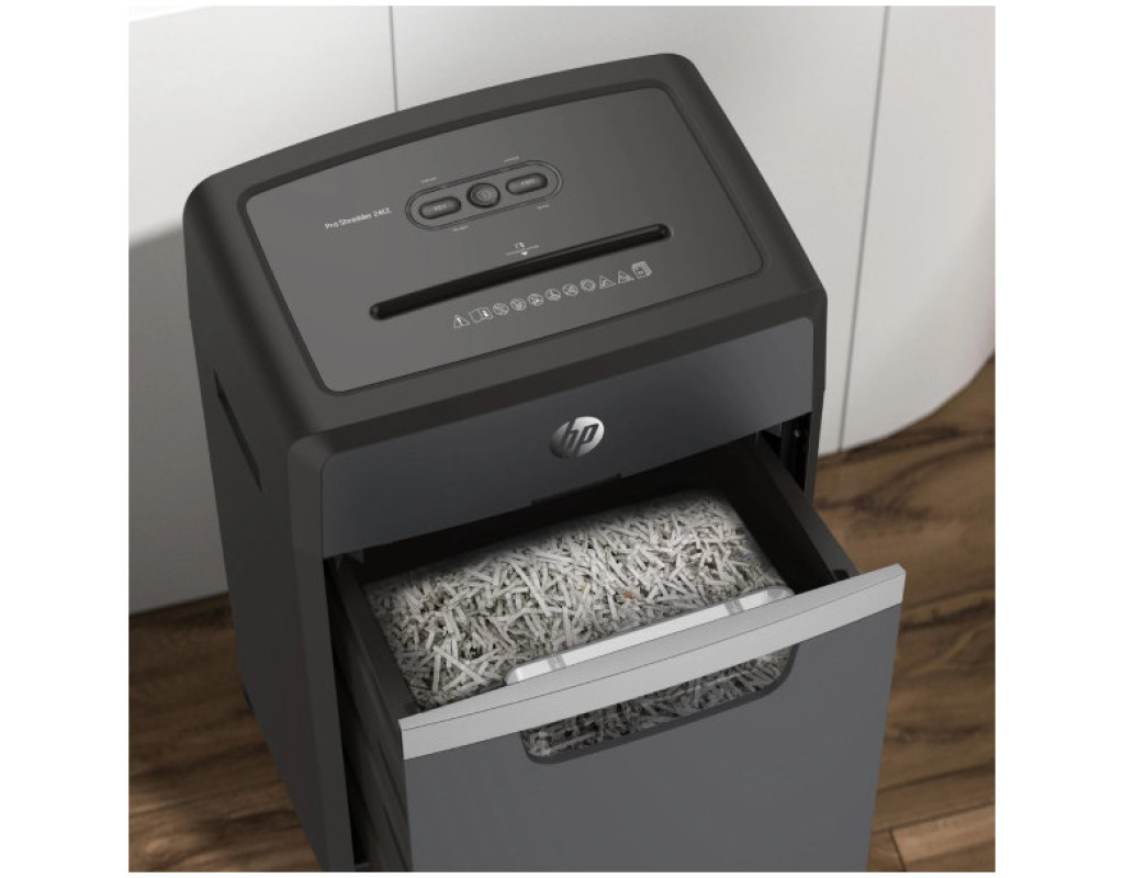 Знищувач документів HP Shredder Pro 24CC із пониженим, порівняно з іншими моделями цього класу, рівнем робочого шуму – це чудове рішення для використання в open-space офісах. Високий рівень безпеки P-4 згідно DIN 66399 відповідає вимогам Загального регламенту захисту даних (DSGVO), тому гарантує повну безпеку конфіденційних даних. Знищуйте шредером документи, які містять комерційну таємницю або персональну інформацію, відомості про зарплату, бухгалтерську та податкову звітність тощо. Він одночасно подрібнить до 24 аркушів формату А4 (80 г/м²) та без проблем впорається з скріпками, скобами та кредитними картками. Шредер ріже документи перехресним зрізом на частинки розміром 4х35 мм зі швидкістю 1,6 м/хв. Знищувач документів HP Shredder Pro 24CC оснащений індикаторами перегріву та перевантаження. Функція авто-реверсу протидіє застряганню аркушів – якщо ви випадково поклали більше аркушів, зайві аркуші автоматично подаються назад. Безперервний час роботи шредера – 40 хв, час охолодження – 50 хв. Оглядове вікно, розташоване у передній частині кошика для відходів, дозволяє легко контролювати рівень його заповнення та вчасно очищати від відрізків. Чотири коліщатка, два з яких можна зафіксувати, роблять шредер мобільним та зручним у користуванні. |