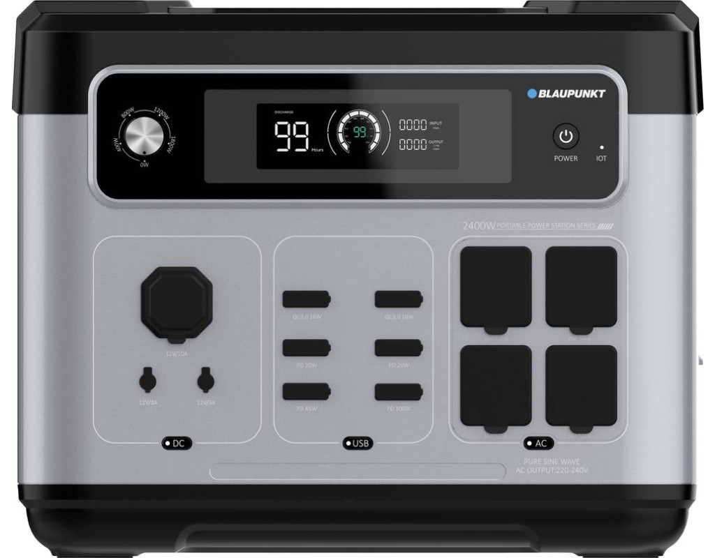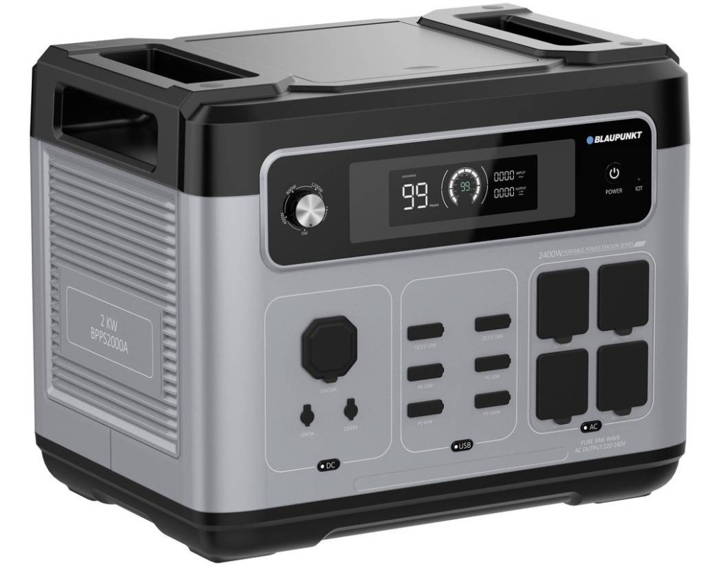 Blaupunkt JuiceBox 2000 - ідеальний компаньйон для пригод на природі, походів, вечірок у саду, будівельних майданчиків без підключення до електромережі або як надійне аварійне резервне джерело живлення. Завдяки зручному дизайну та літій-залізо-фосфатному акумулятору ємністю 2048 Вт·ч він забезпечує електроживлення у будь-якому місці та у будь-який час. Способи виведення енергії Видаючи вихідну потужність до 2400 Вт від мережі 220 В через 4 розетки Schuko, JuiceBox може забезпечити живлення практично будь-якого електронного приладу. Потужні прилади (наприклад, фени, плити, електроінструменти): 1-2 години Пристрої середньої потужності (наприклад, холодильники, комп’ютери, телевізори, освітлення): 10–30 годин На дисплеї відображається споживання в реальному часі та час роботи, що залишився. Крім того, кілька USB-портів (3хUSB 2.0, 3хUSB Type-C) дозволяють заряджати смартфони та інші мобільні пристрої; батарея цієї портативної електростанції забезпечує близько 100-200 циклів заряджання типового акумулятора телефону. 2 розетки DC5521 і автомобільна розетка 12 В задовольняють решту потреб у мобільному живленні. Варіанти зарядки Blaupunkt JuiceBox 2000 пропонує гнучкі варіанти заряджання: Побутова розетка потужністю до 1800 Вт (повна зарядка менше ніж за 70 хвилин) Автомобільний прикурювач для заряджання під час руху (зарядний кабель у комплекті) Сонячні панелі потужністю до 500 Вт, що робить його екологічним рішенням у галузі енергозбереження Термін служби Розроблений для тривалої роботи, JuiceBox 1000 витримує понад 3500 циклів заряджання, забезпечуючи роки надійної роботи. Мобільний додаток Підключіть JuiceBox до програми Wonderfree для дистанційного керування пристроєм. Програма дозволяє регулювати параметри потужності, відстежувати споживання енергії в режимі реального часу та контролювати внутрішню температуру, забезпечуючи повний контроль та зручність використання зі смартфона. |