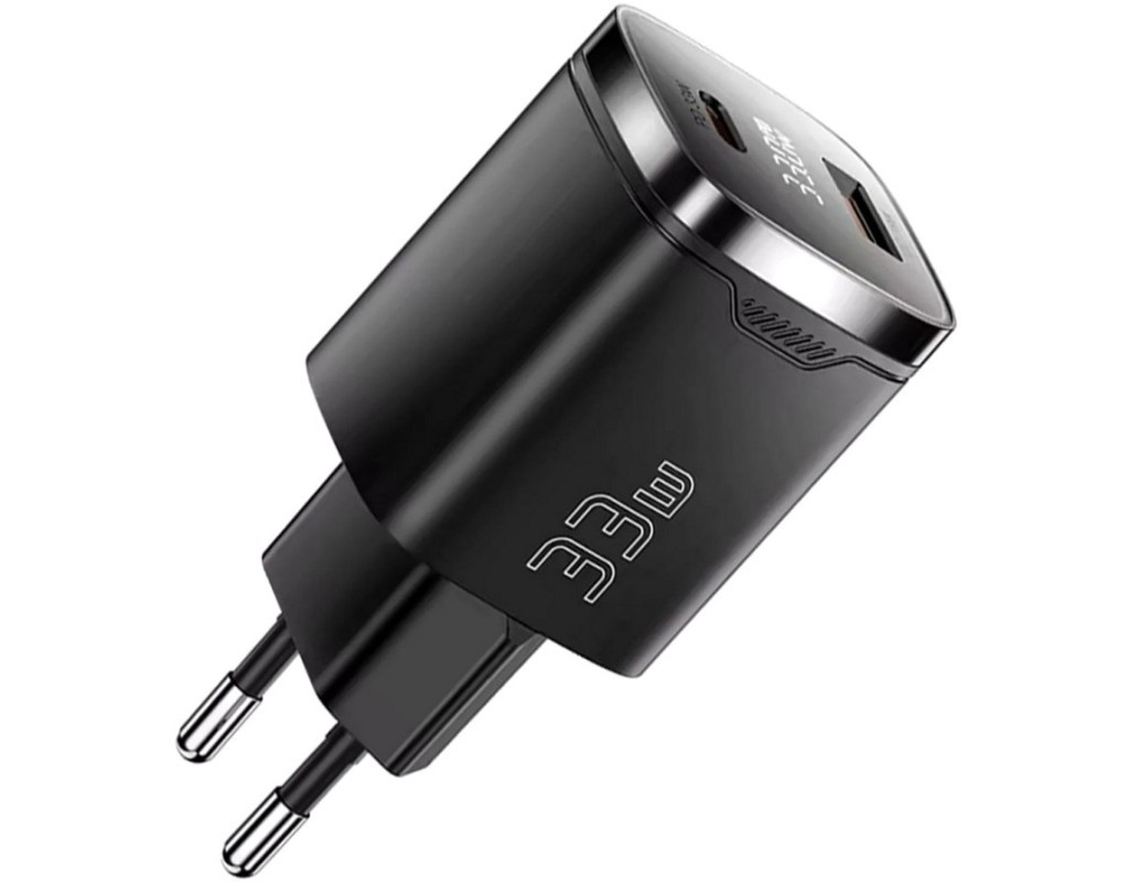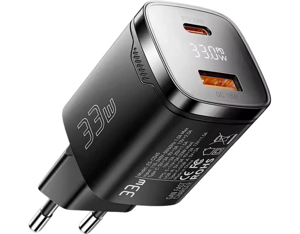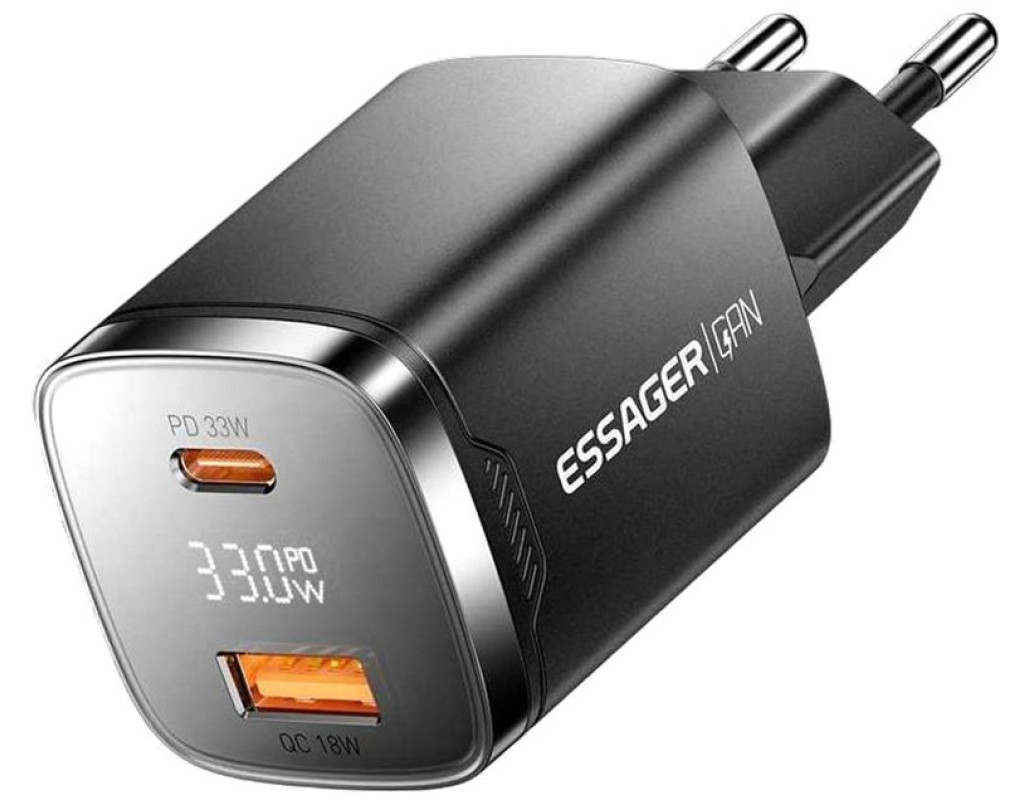 Мережевий зарядний пристрій ESSAGER Gamet 33W GaN Digital Display A+C Black (ECT33W-GMB01-Z) Відчуйте майбутнє швидкої та ефективної зарядки з мережевим зарядним пристроєм ESSAGER Gamet 33W GaN Digital Display! Цей компактний, але надзвичайно потужний адаптер стане вашим незамінним супутником для заряджання всіх сучасних гаджетів – від смартфонів та планшетів до ультрабуків.